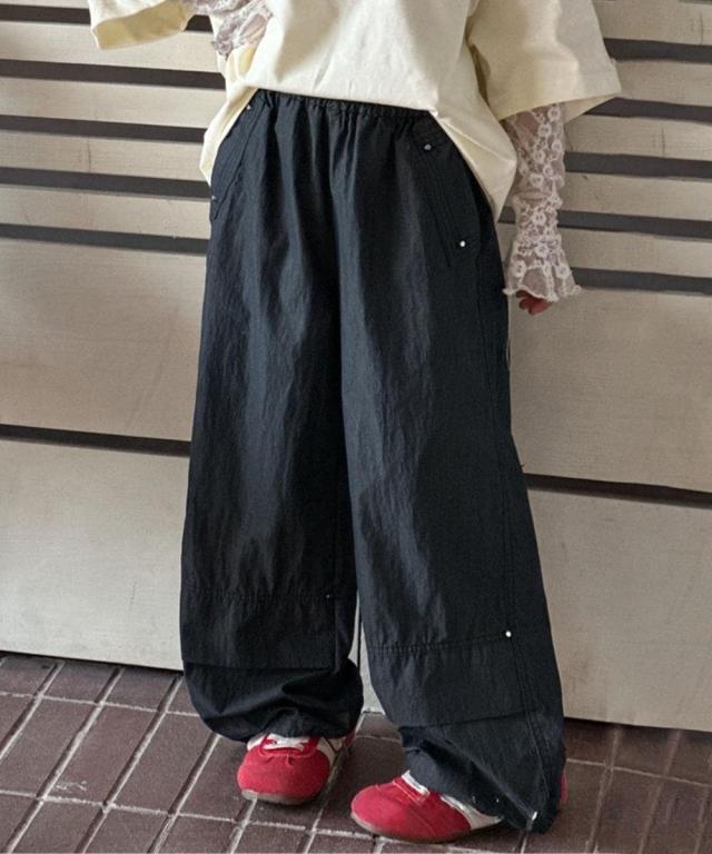 ボリューム感たっぷりのワイドシルエットが特徴的なキッズパンツ。ゆとりのあるデザインで、動きやすくカジュアルスタイルにマッチするスポーティなデザイン。裾の切り替えデザインがアクセントとなり、シンプルでおしゃれな仕上がりに。