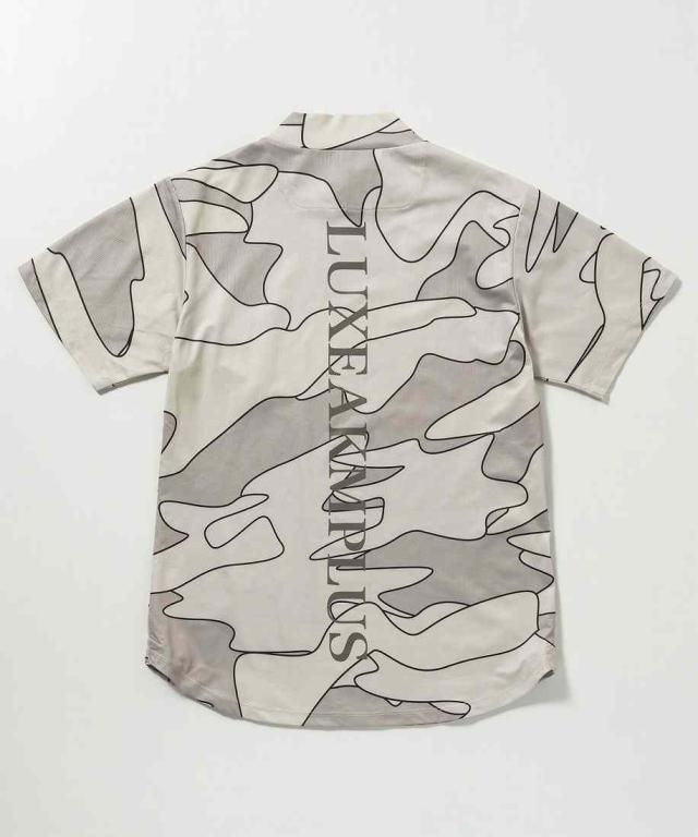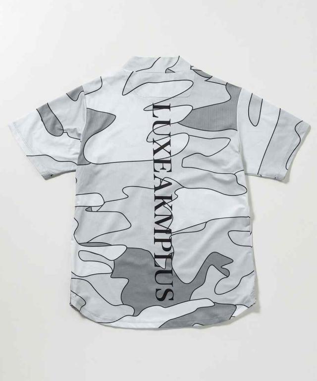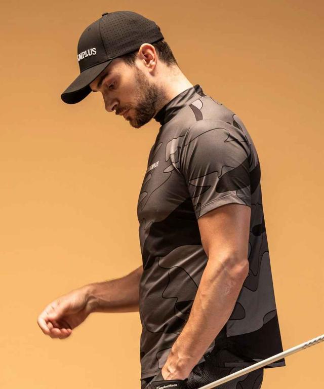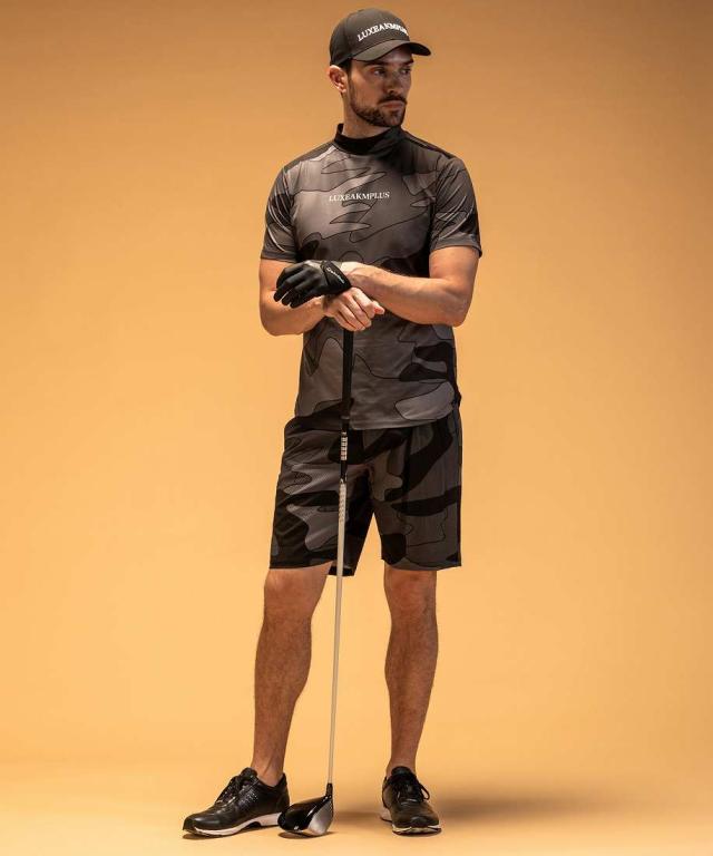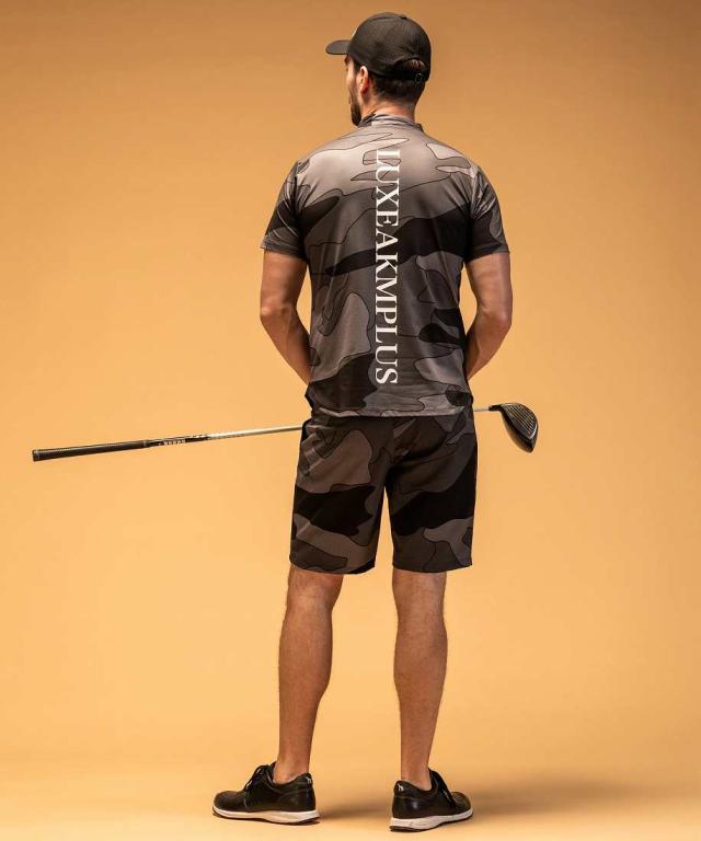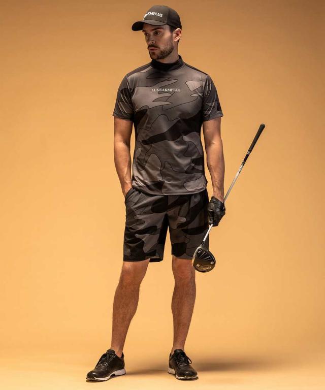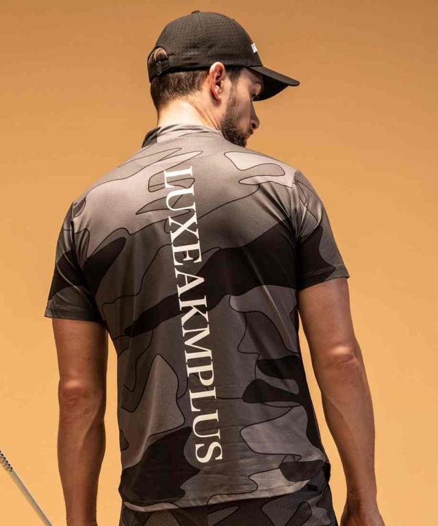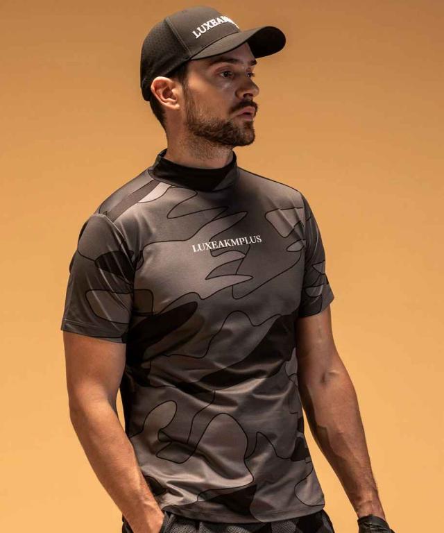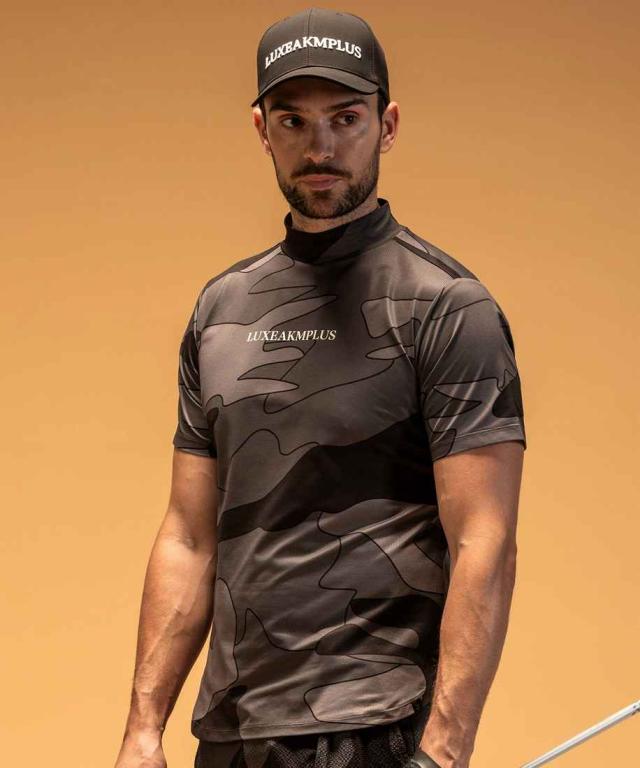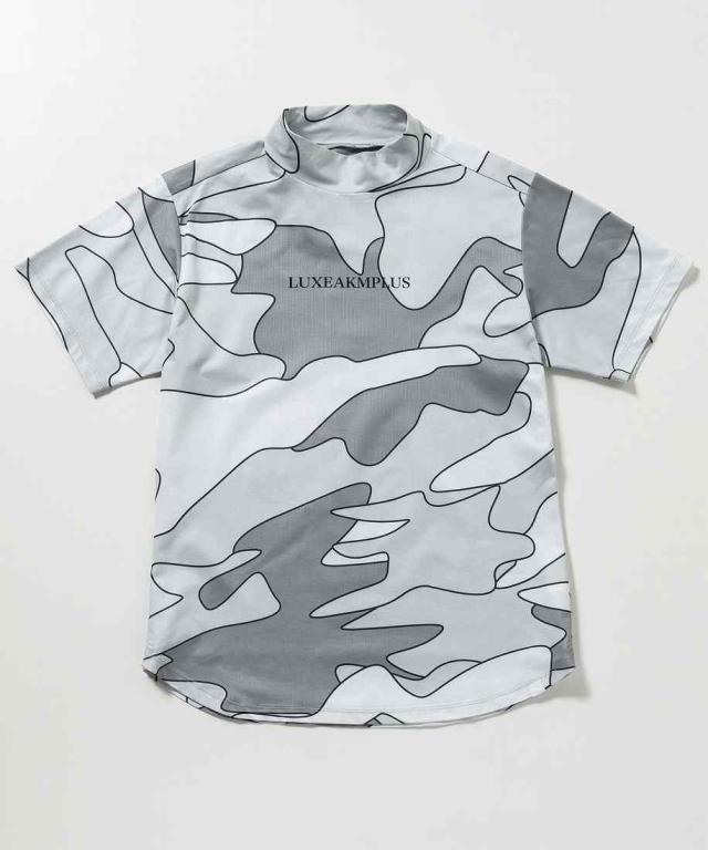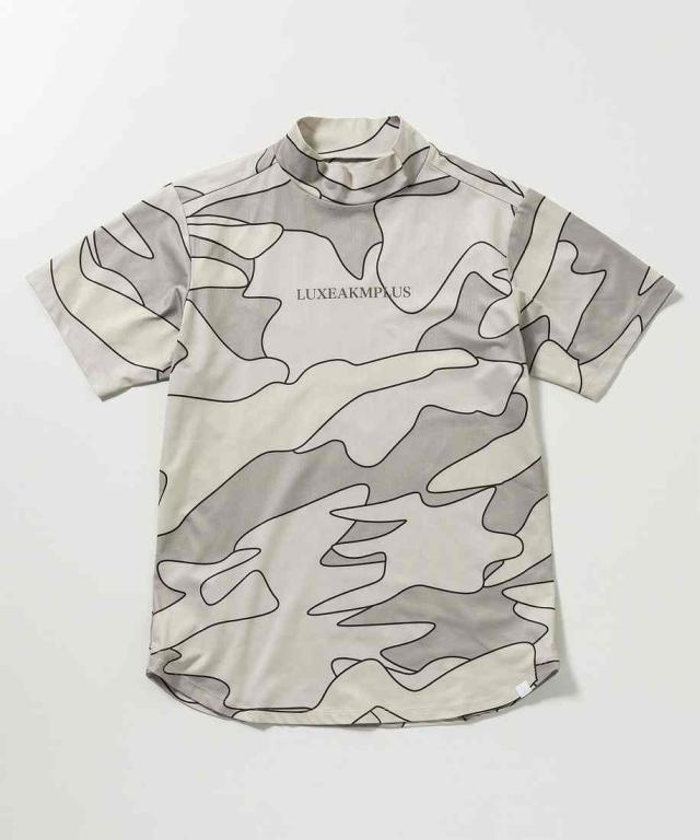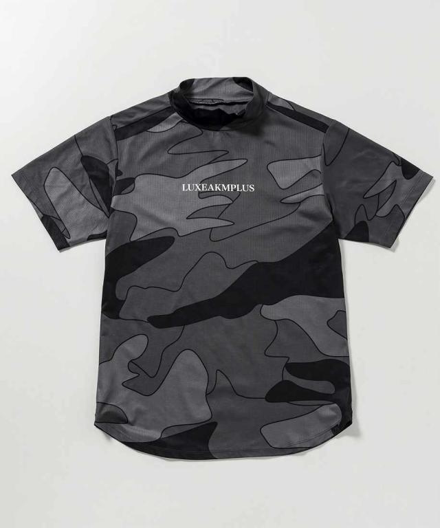 LUXEAKMPLUS ゴルフ カモ柄半袖モックネックTシャツ(吸水速乾 / UVカット)