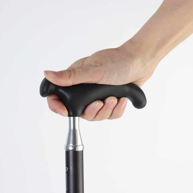 腕とステッキが一直線になるように持ってください。グリップの一部だけを握ると不安定になり危険です。