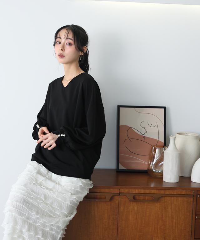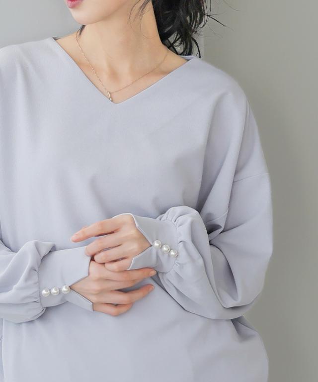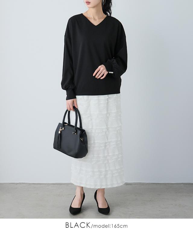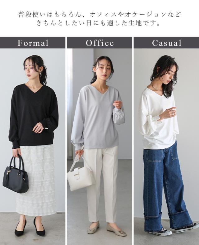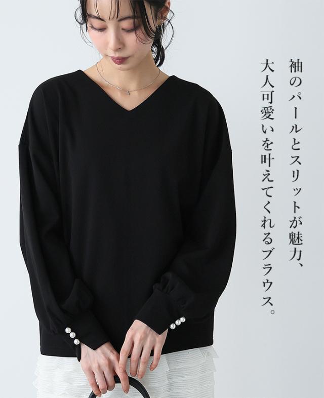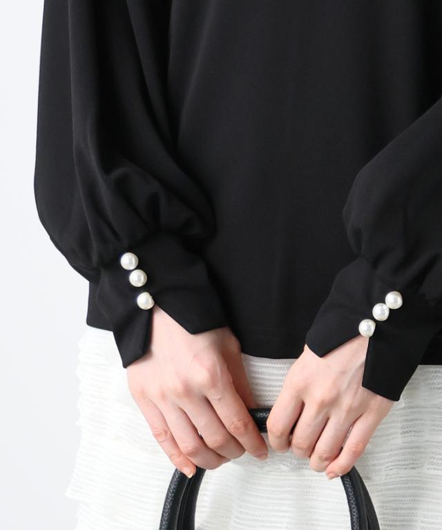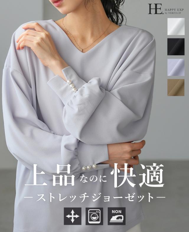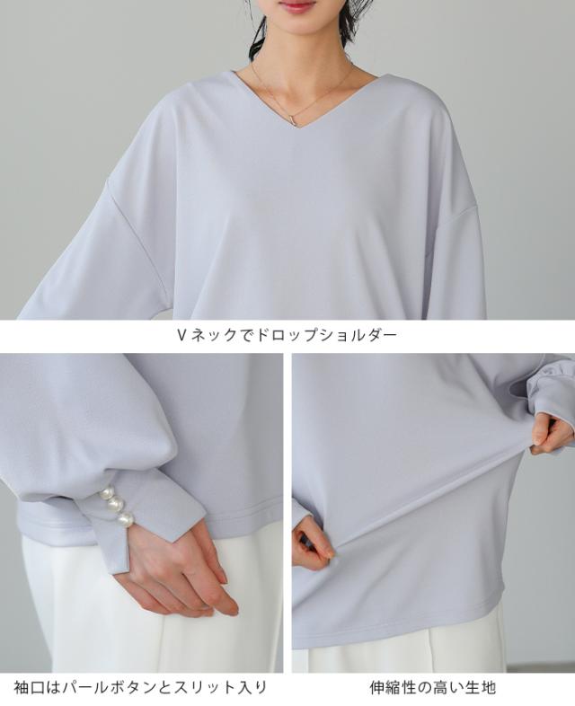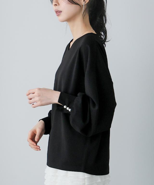梨地パール袖ブラウス セレモニー オフィス きれいめ レディース ジョーゼット 上品 プルオーバー トップス オケージョン カットソー【メール便1点まで】[M便 1/1]