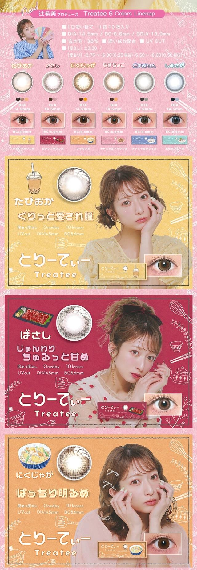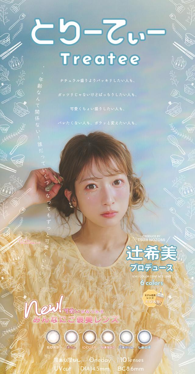 【即日発送】辻希美 カラコン とりーてぃー ワンデー 1箱10枚入り 14.5mm 度なし 度あり UVカット 低含水 盛れる 自然 辻ちゃん バレにくい ナチュラル あざとい デカ目 高発色 トリーティー 当日発送 treatee 1day