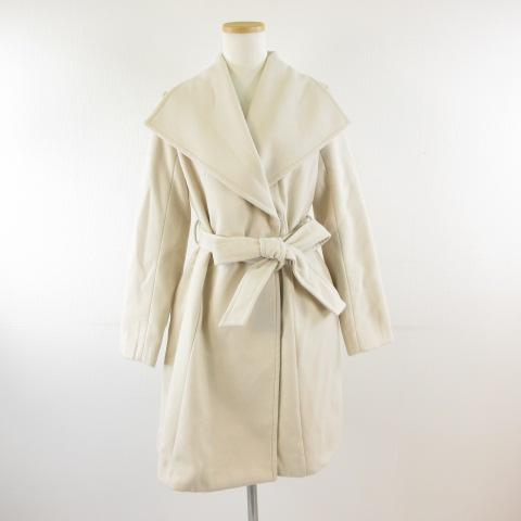 【中古】リゼクシー RESEXXY コート ミドル丈 長袖 ビックカラー ライトベージュ オフホワイト S *T27 レディース