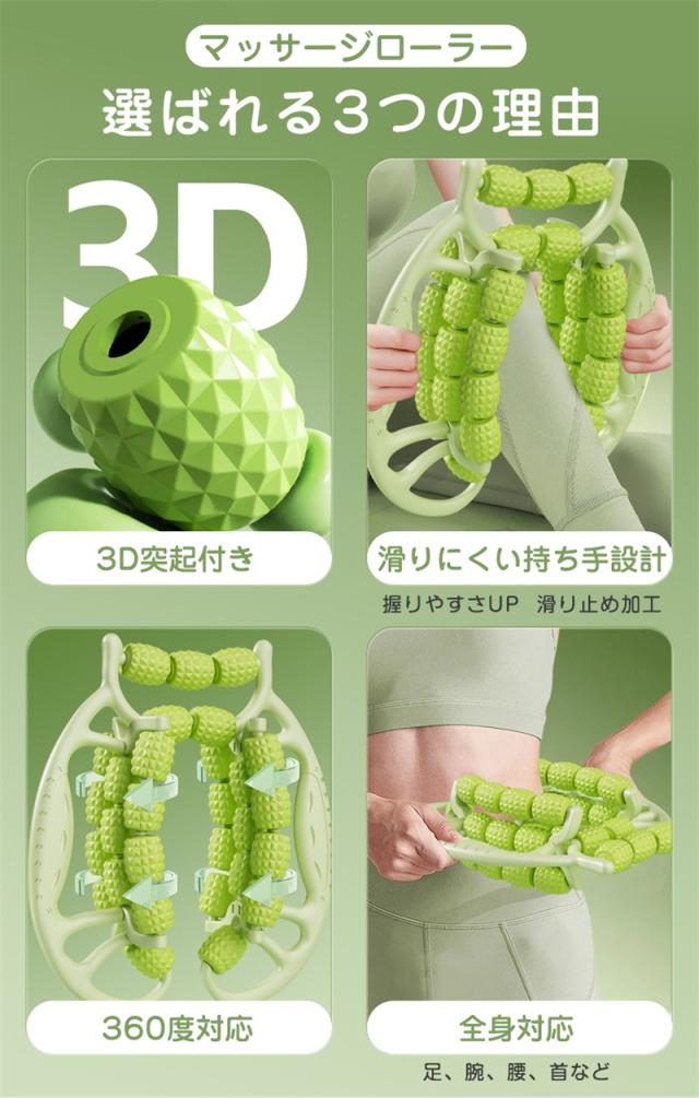 マッサージローラー 足 360度回転 29つのローラー 手持ち 首 肩 二の腕 太もも マッサージ器 ストレッチ