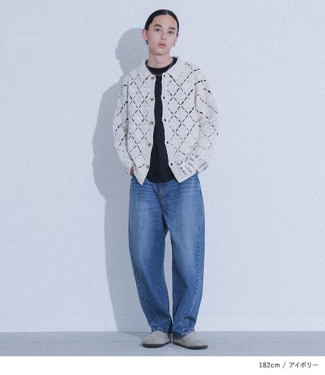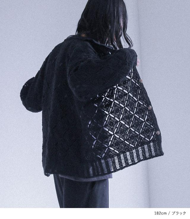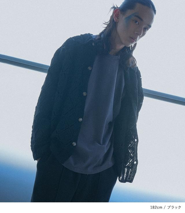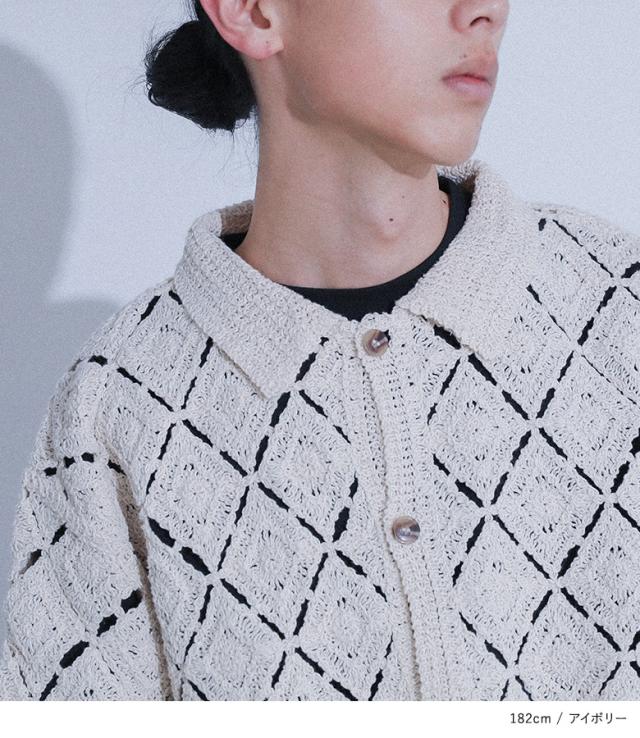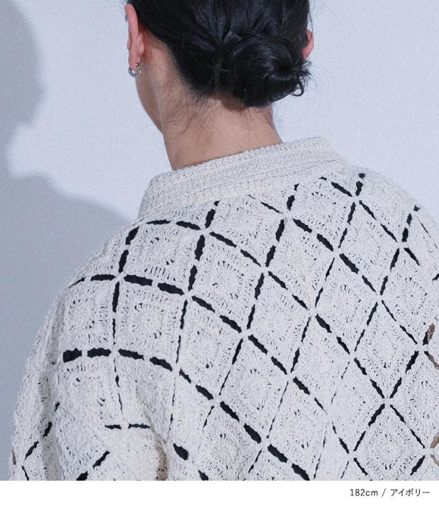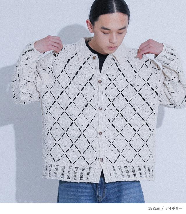 【送料無料】『MDRクロシェニットカーディガン』【メール便不可】【30】[カーディガン メンズ トップス 長袖 ニット セーター クロシェ編み ダイヤ柄 羽織 レイヤード 重ね着 春 秋]