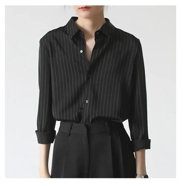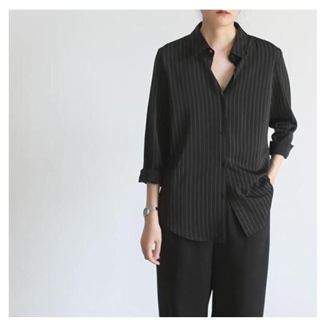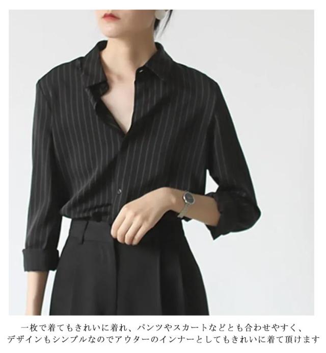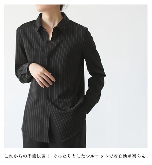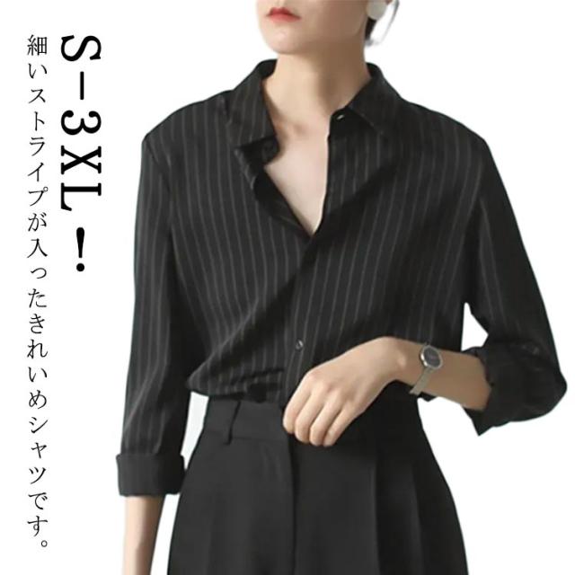 | S-3XL!細いストライプが入ったきれいめシャツです。 これからの季節快適! ゆったりとしたシルエットで着心地が楽ちん。 一枚で着てもきれいに着れ、パンツやスカートなどとも合わせやすく、デザインもシンプルなのでアウターのインナーとしてもきれいに着て頂けます | |
