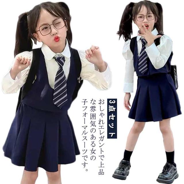 スクール Vネック スーツ 卒業式 卒業式 女の子スーツ 3点セット シャツ 女子高生制服 制服 ベスト スカートスーツ 制服 コスプレ 学生服 ベスト 長袖シャツ 入学式 スカート セットアップ 結婚式 写真 100 110 120 130 140 150