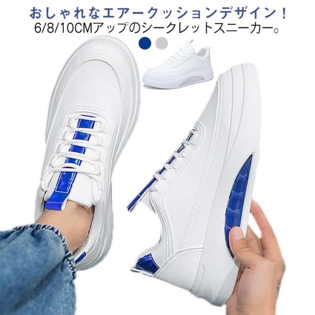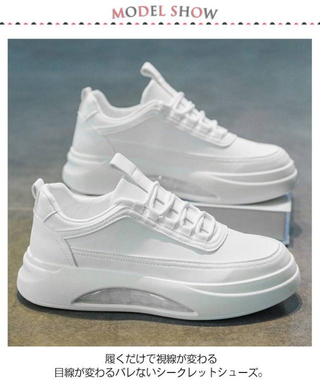 | おしゃれなエアークッションデザイン!6/8/10cmアップのシークレットスニーカー。 履くだけで視線が変わる目線が変わるバレないシークレットシューズ。 インヒール内蔵で外見からは身長アップシューズとは分からない自然なデザイン 散歩や買い物などで、スーパーやショッピングモールへお出かけの際に、着用されることが最適です。ウォーキングはもちろん、普段使いにもバッチリなデザインです。 | |