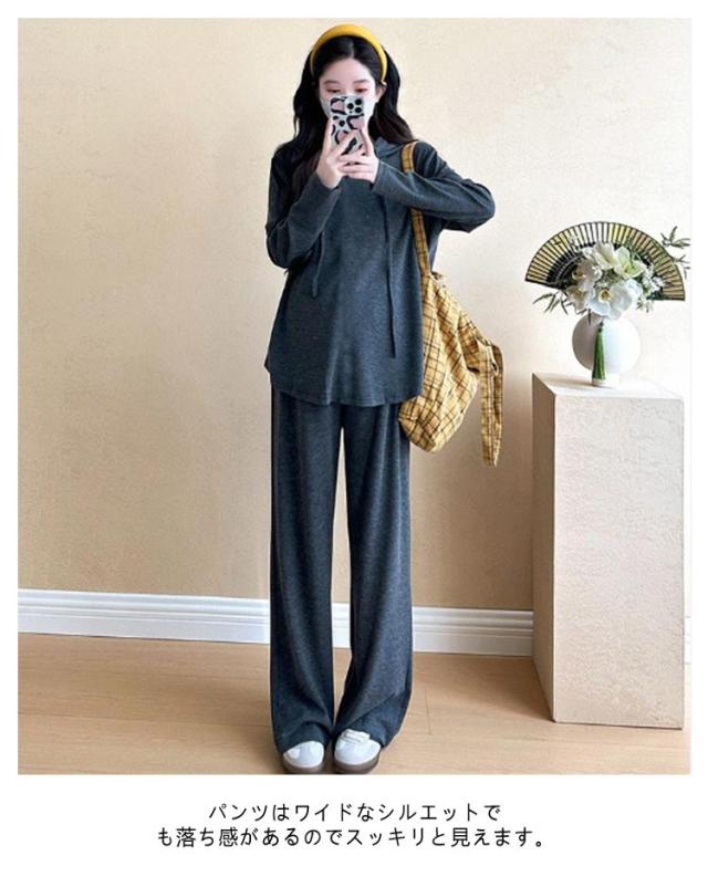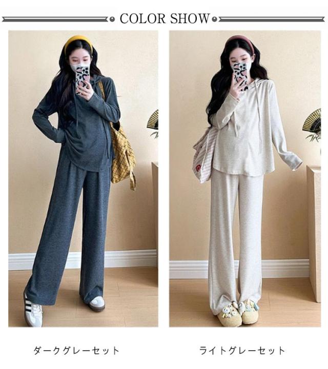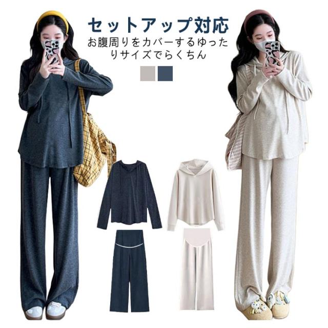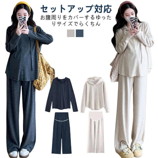 トレーナ 長袖 マタニティ ワイドパンツ レディース パーカー ズボン スウェット スウェット プルオーバー 寝巻 ジャージ 長ズボン セット 授乳服 ウエストゴム マタニティウェア 春秋 上下セット セットアップ 産前 産後 妊婦 20代 30代 40代 ルームウェア