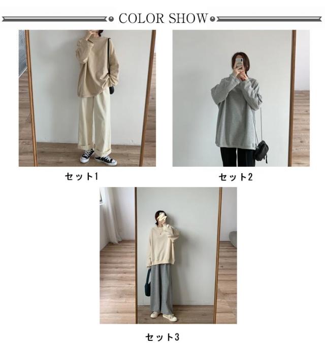 | S-2XL!着心地が良くシンプルなデザインはデイリー使いに大活躍セットアップ ゆったりとしたシルエットで、締め付け感がないので、気持ち良い着心地で過ごしやすい。 便利な上下セットだから外に出れる便利な1枚! セットはもちろん、別々にもコーデしやすいシンプルデザインにもうれしいポイント。 | |
