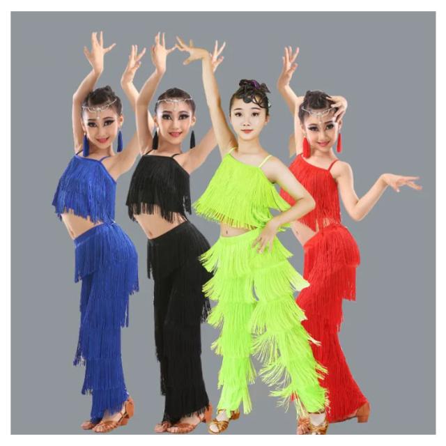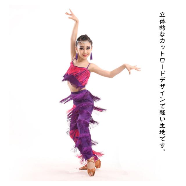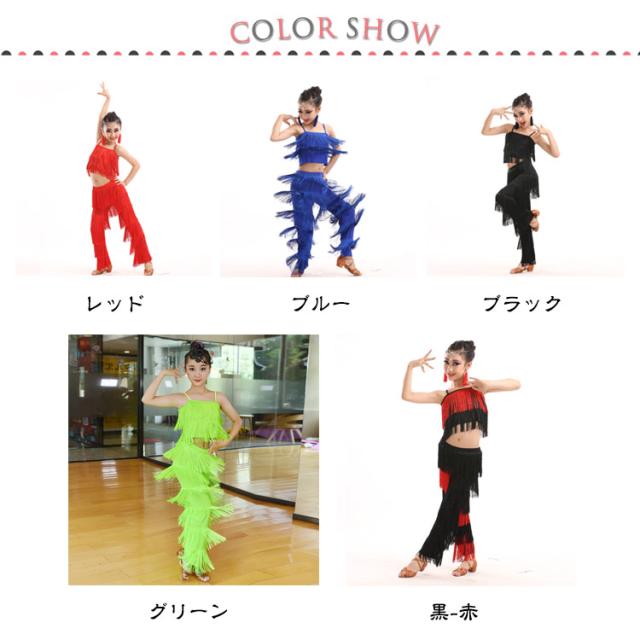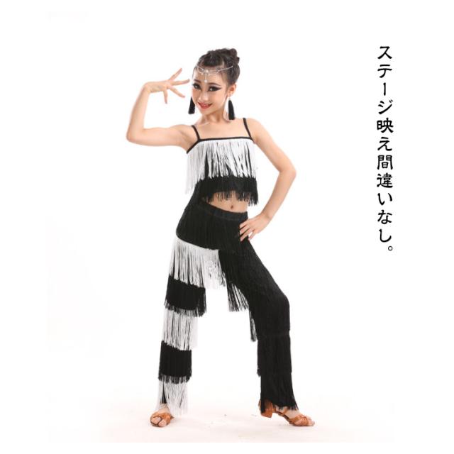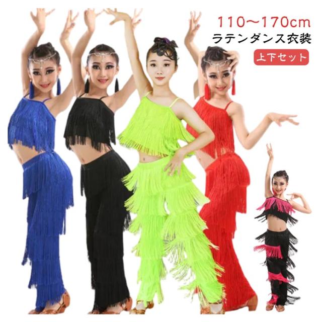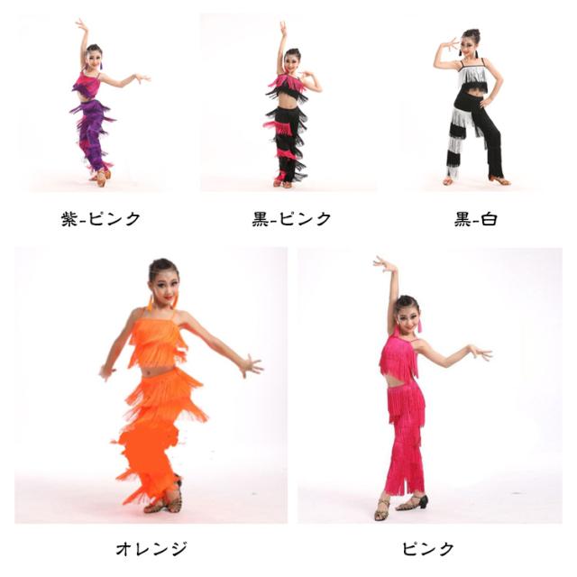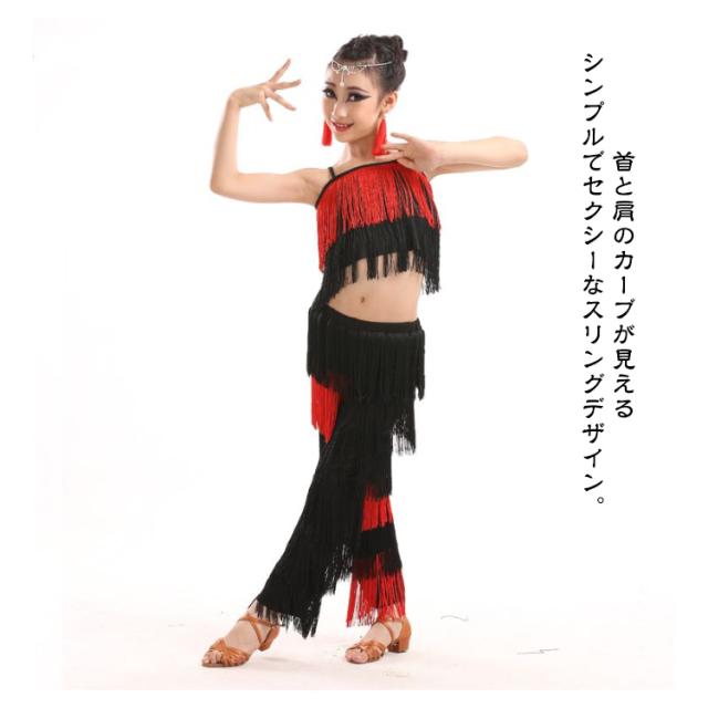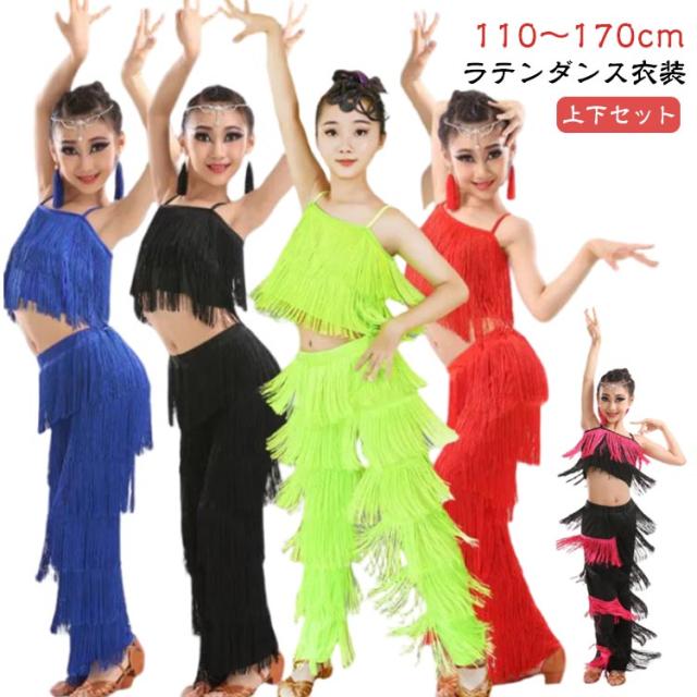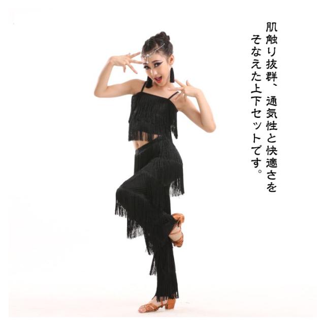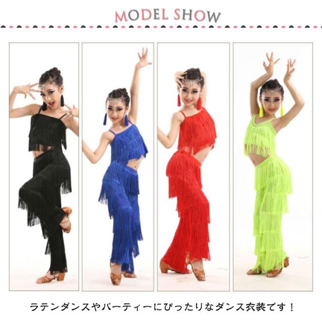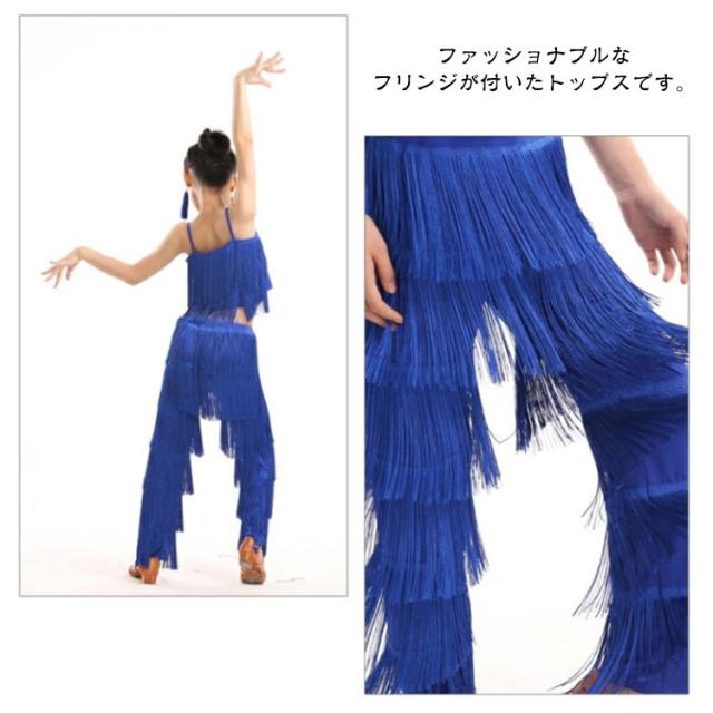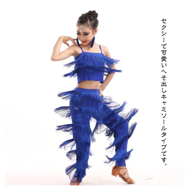 子ども ガールズ キッズ ファッション パンツ 女の子 子供 レディース ジュニア ラテンダンス衣装 上下セット トップス HIPHOP ダンス キッズ 衣装 ステージ衣装 110 フリンジ へそ出しキャミソール セットアップ 全8色 ラテン 120 130 140 150 160