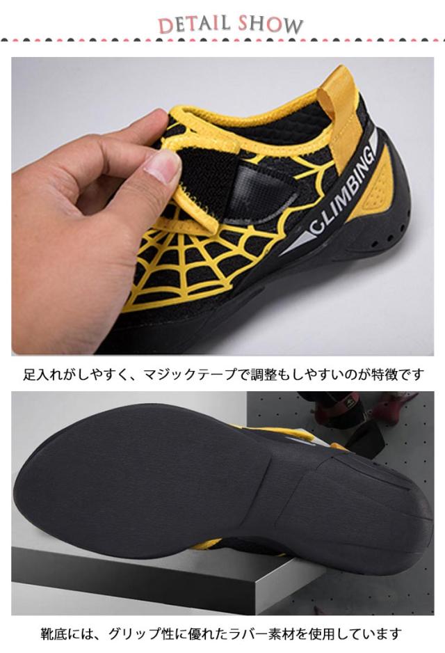 クライミング シューズ キッズ 蜘蛛の巣柄 ボルダリングシューズ 初心者 女の子 男の子 ジュニア 中級者 クライミングシューズ キッズ用 子供用 室内 ユニセックス 軽量 ロッククライミング トレーニング 20-28cm