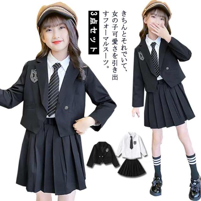 制服 女の子 ブレザー 卒業式 卒服 3点セット 小学生 小学校女子 スカートスーツ 中学生 制服 スーツ ジャケット セット JK 韓国 スーツ 卒服 卒服 白シャツ 長袖 スカート ピアノ発表会 入学式 フォーマルスーツ 小学校 送料無料 120 130 140 150 160