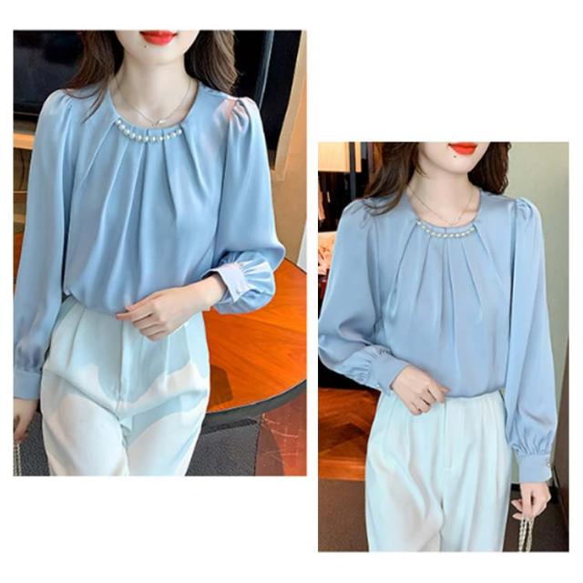 シャツ パール付き 長袖 フォーマルブラウス レディース パール付き トップス プチハイネックブラウス 長袖ブラウス フォーマル パール 無地 オフィスブラウス 長袖ブラウスレディース フォーマルブラウス