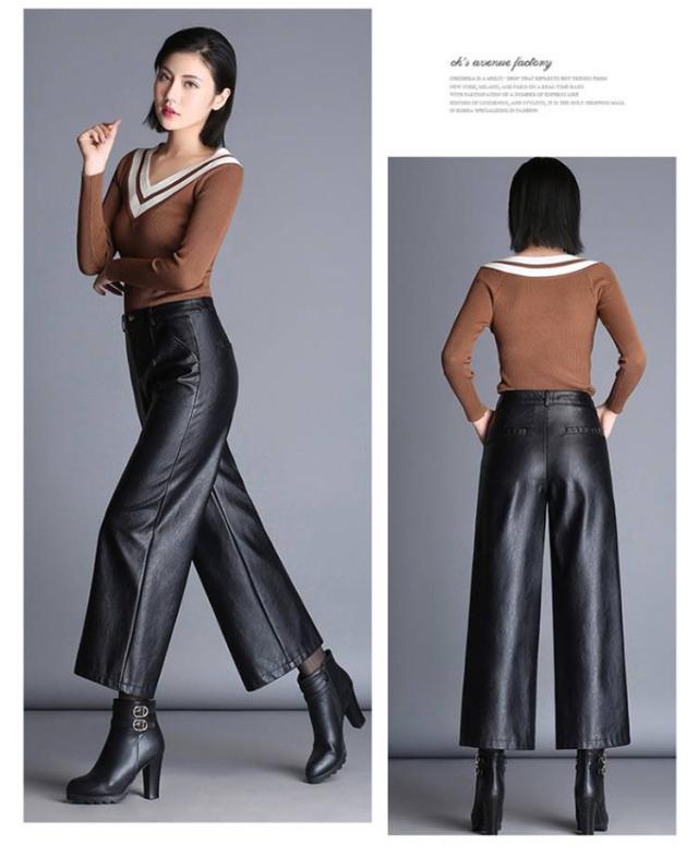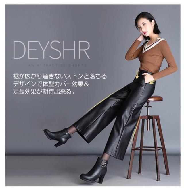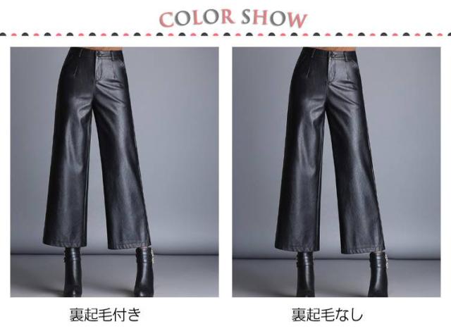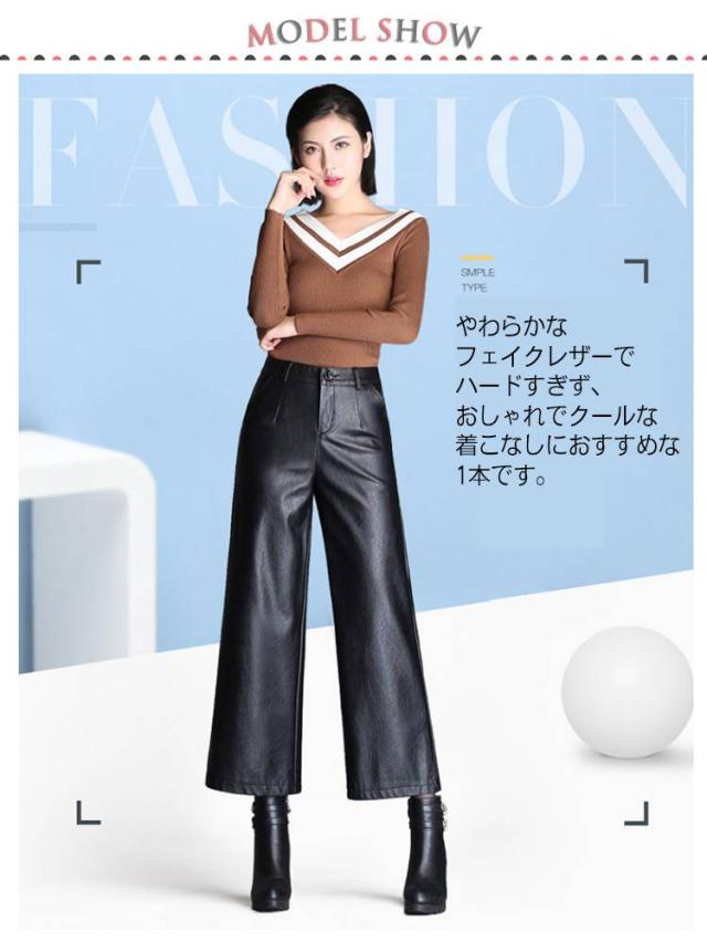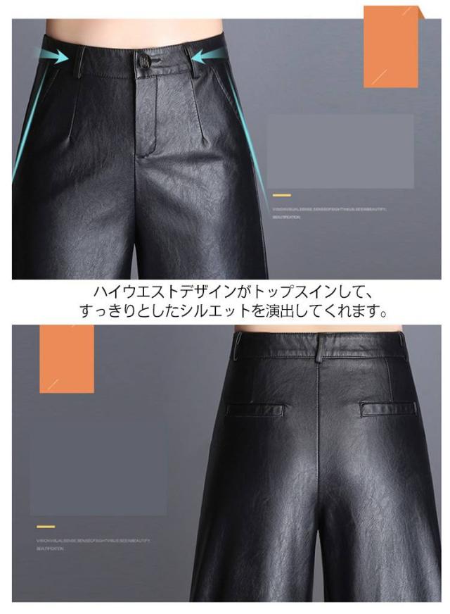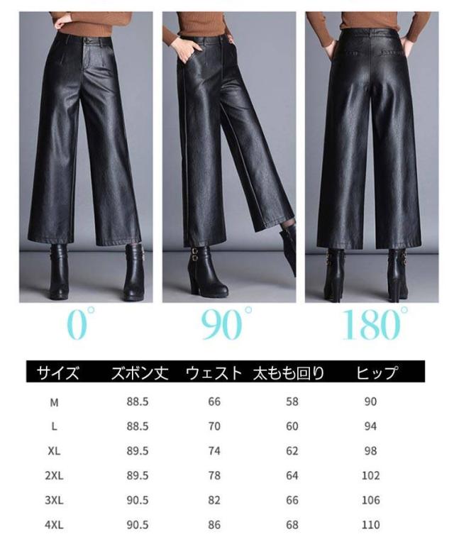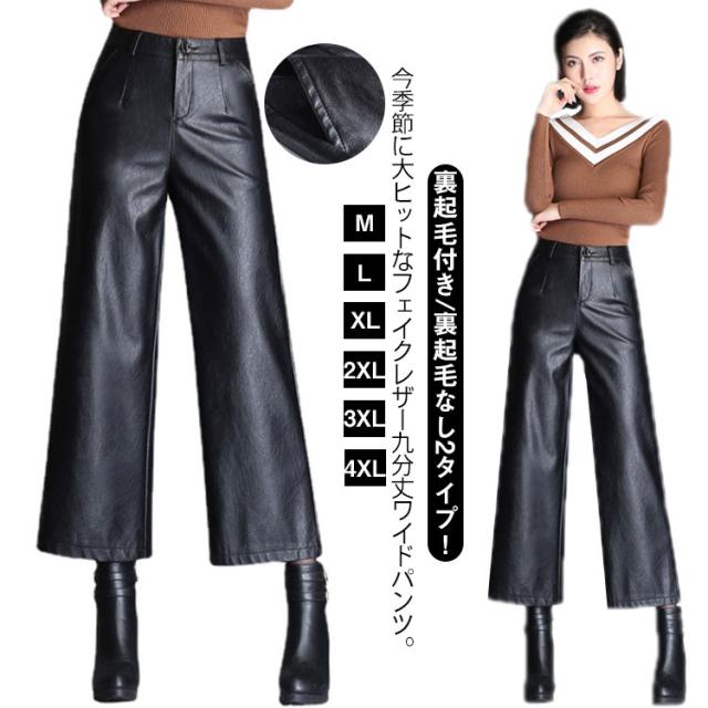 レディース ガウチョパンツ レザー 大きいサイズ PU M フェイクレザーパンツ フェイクレザー 九分丈 裏起毛なし 合皮 裏起毛付き ボトムス 九分丈パンツ スカーチョ ハイウエスト 大きサイズ 秋冬 ワイドパンツ L XL 2XL 3XL