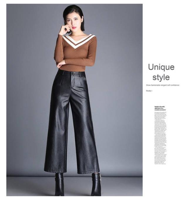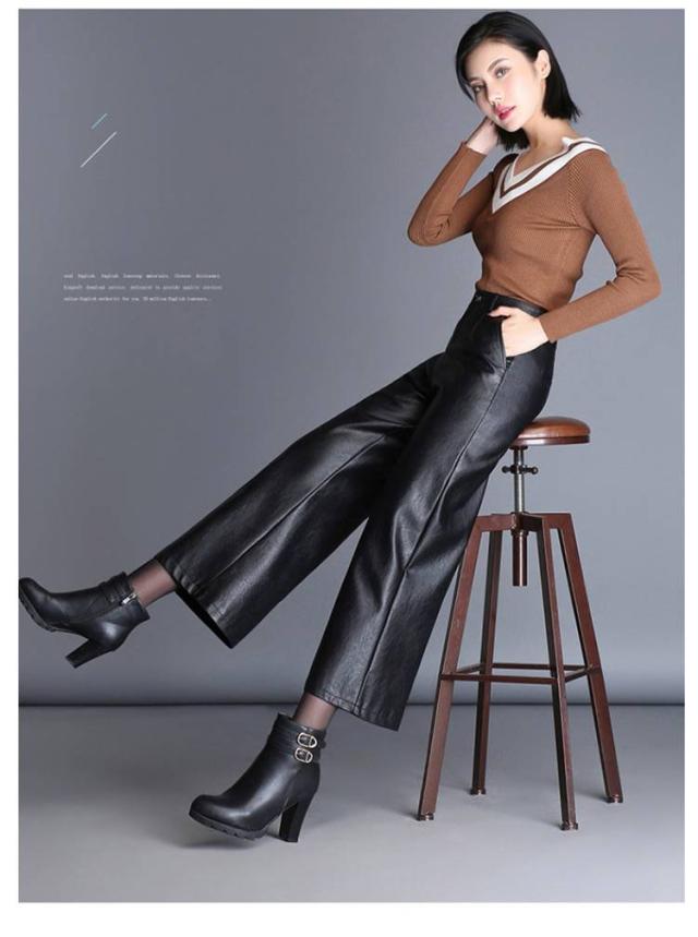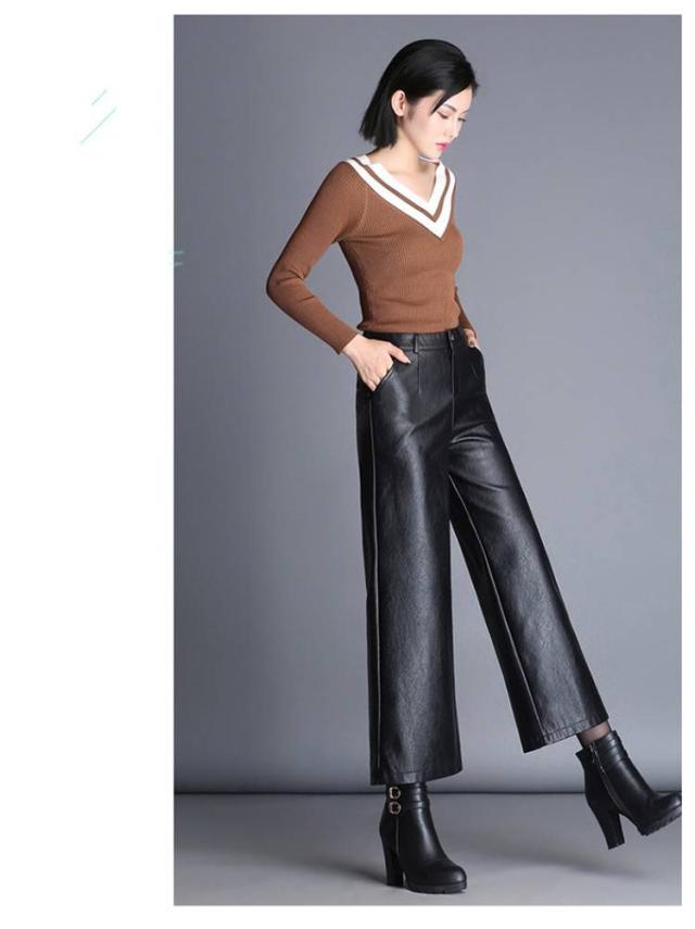 | 【裏起毛付き/裏起毛なし2タイプ!】 今季節に大ヒットなフェイクレザー九分丈ワイドパンツ。 ほどよい艶のしっとりした質感が品格漂うマットレザー素材で仕立てました。 裾が広がり過ぎないストンと落ちるデザインで体型カバー効果&足長効果が期待出来る。 ハイウエストデザインがトップスインして、すっきりとしたシルエットを演出してくれます。 やわらかなフェイクレザーでハードすぎず、おしゃれでクールな着こなしにおすすめな1本です。 | |