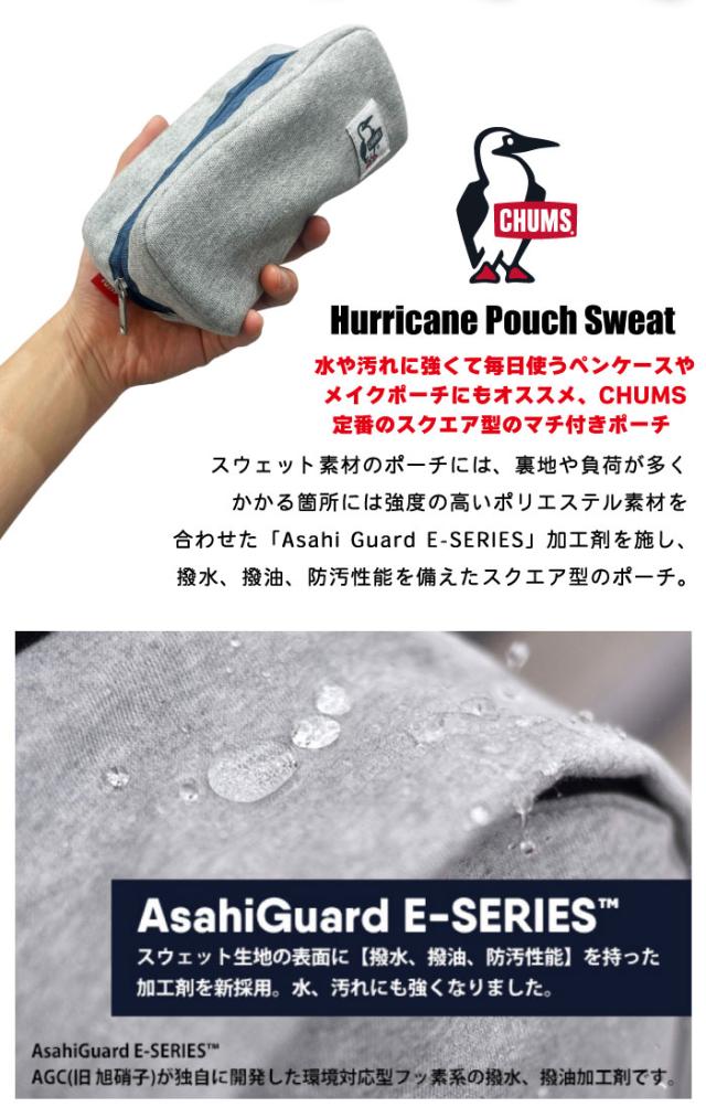 CHUMS チャムス ハリケーンポーチスウェット Hurricane Pouch Sweat ペンケース 化粧ポーチ メイク メンズ レディース 小物入れ 撥油 撥水 防汚 スウェット スクエア型 ブランド 柄 CH60-3592