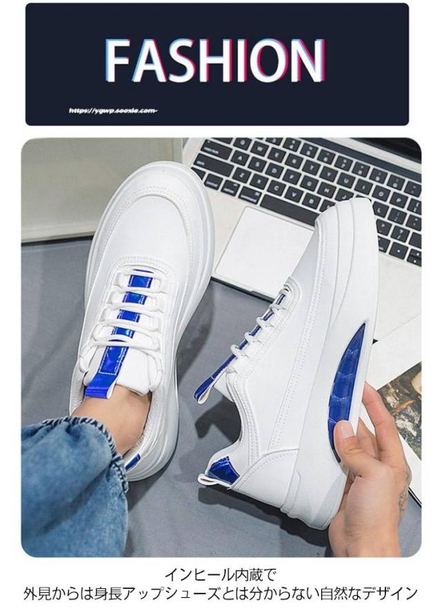 | おしゃれなエアークッションデザイン!6/8/10cmアップのシークレットスニーカー。 履くだけで視線が変わる目線が変わるバレないシークレットシューズ。 インヒール内蔵で外見からは身長アップシューズとは分からない自然なデザイン 散歩や買い物などで、スーパーやショッピングモールへお出かけの際に、着用されることが最適です。ウォーキングはもちろん、普段使いにもバッチリなデザインです。 | |