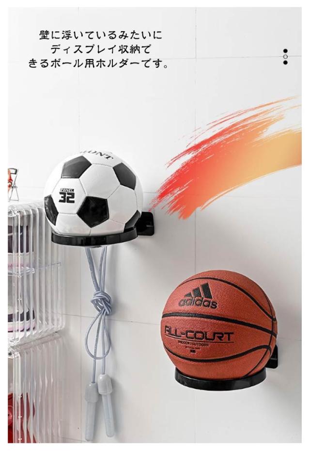 | 【2個セット】【粘着式・工具不要】 壁に浮いているみたいにディスプレイ収納できるボール用ホルダーです。 床に転がっているボールをスッキリ収納出来るだけではなく スタイリッシュなお部屋にイメージチェンジ♪ バスケットボールやサッカーボールなどのボール類だけでなく、帽子やサイン入り記念品などを飾ってもGood! 小物を掛けて置けるフックもついているのでとっても便利ですね★ | |