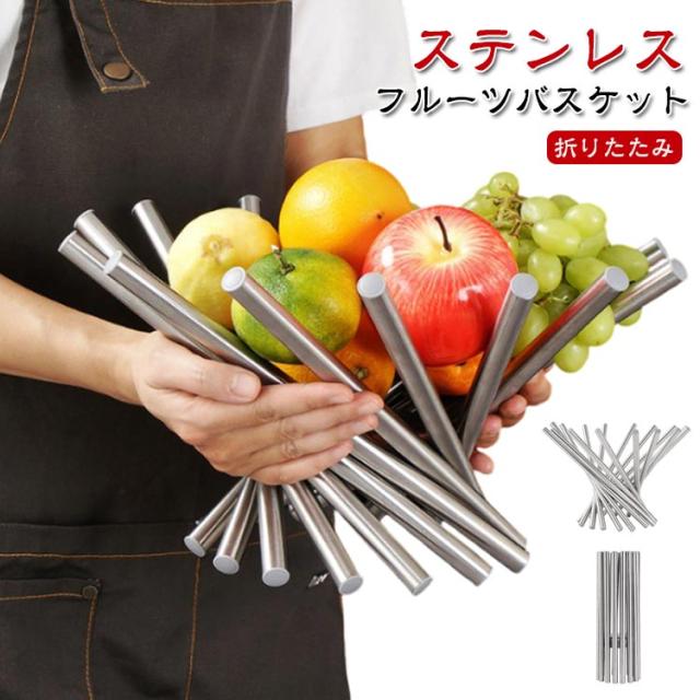 カゴ 折りたたみ式 バスケット フルーツボウル フルーツバスケット フルーツバスケット お菓子入れ フルーツボール 北欧 おしゃれ フルーツ皿 果物かご ステンレス フルーツ ワイヤーバスケット 変形 インテリア 家庭用 人気 プレゼント
