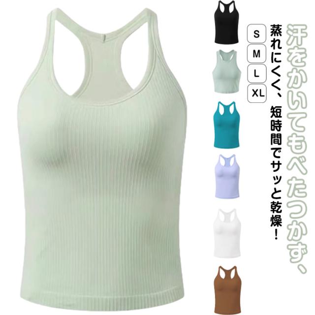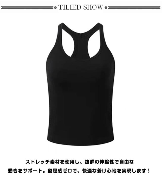 ヨガウェア ブラトップ タンクトップ ウェア 長め ノースリーブ ピラティス カップ付 レディース おしゃれ トップス ジムウェア 無地 ホットヨガ スポーツウェア トレーニングウェア ダイエット 薄手