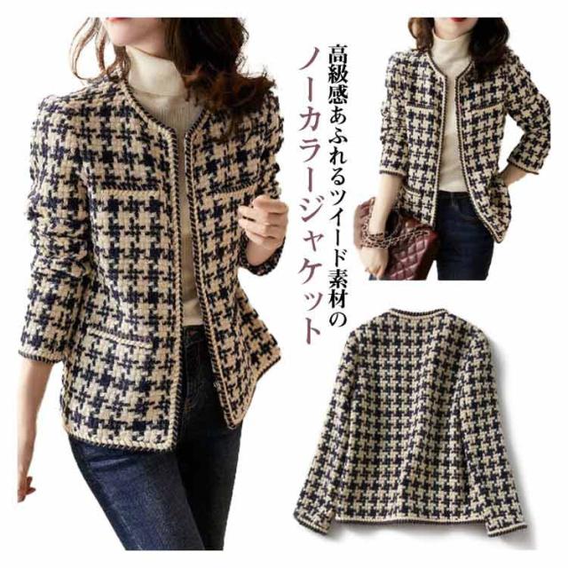 ジャケット レディース ツイード ジャケット 春 秋 ノーカラー ジャケット 長袖 アウター 春服 ショート丈 フォーマル 通勤 冠婚葬祭 入学式 卒業式 入園式 卒園式 母親 ママ 通勤 OL 大人 ビジネス カジュアル