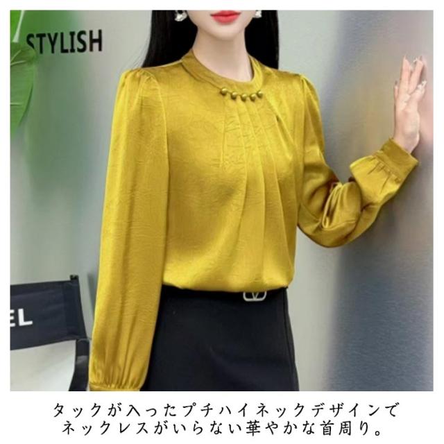 パール シャツ 長袖 パール付き ブラウス ハイネック レディース プチハイネックブラウス 長袖ブラウス フォーマル 長袖ブラウスレディース フォーマルブラウス オフィスブラウス パール付き フォーマルブラウス