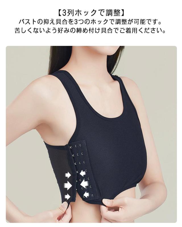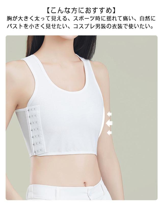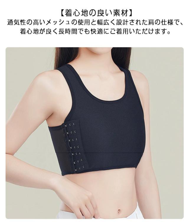 | 【着心地の良い素材】通気性の高いメッシュの使用と幅広く設計された肩の仕様で、着心地が良く長時間でも快適にご着用いただけます。 【胸を自然に小さく見せる】胸つぶしシャツがバストを自然に潰す事で美しいシルエットに見せます。 【3列ホックで調整】バストの抑え具合を3つのホックで調整が可能です。苦しくないよう好みの締め付け具合でご着用ください。 【こんな方におすすめ】胸が大きく太って見える、スポーツ時に揺れて痛い、自然にバストを小さく見せたい、コスプレ男装の衣装で使いたい。 | |