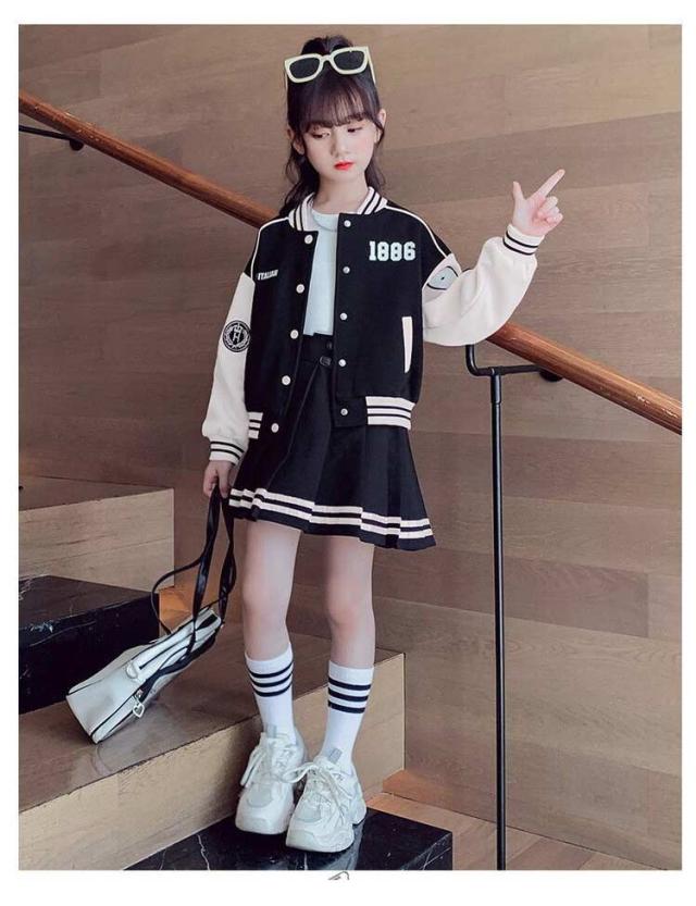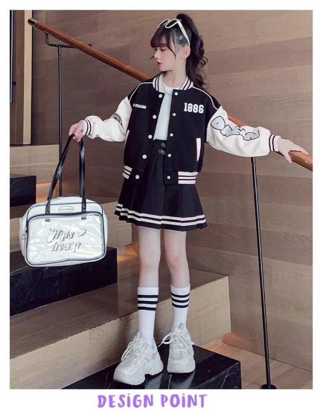 スカート ベージュ ジャケット スプリングコート 女の子 スタジャン セットアップ 通学 野球服 アウター ブルゾン ダンス衣装 子供服 キッズ 110 ジュニア カジュアル 上着 スウェット ジャンパー 長袖 ジャケット ネイビー 紺色 ヒップホップ 120 130 140 150 160