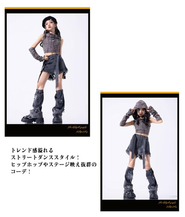 ダンス衣装 k-pop デニム キッズ セットアップ 女の子 ダンス衣装 キッズダンス衣装 子供服 ヒップホップ ジャズダンス ヘソ出し グレー トップス 砂色 パンツ スカート 衣装 jazz hiphop 演出服 キッズ ファッション 夏 練習着