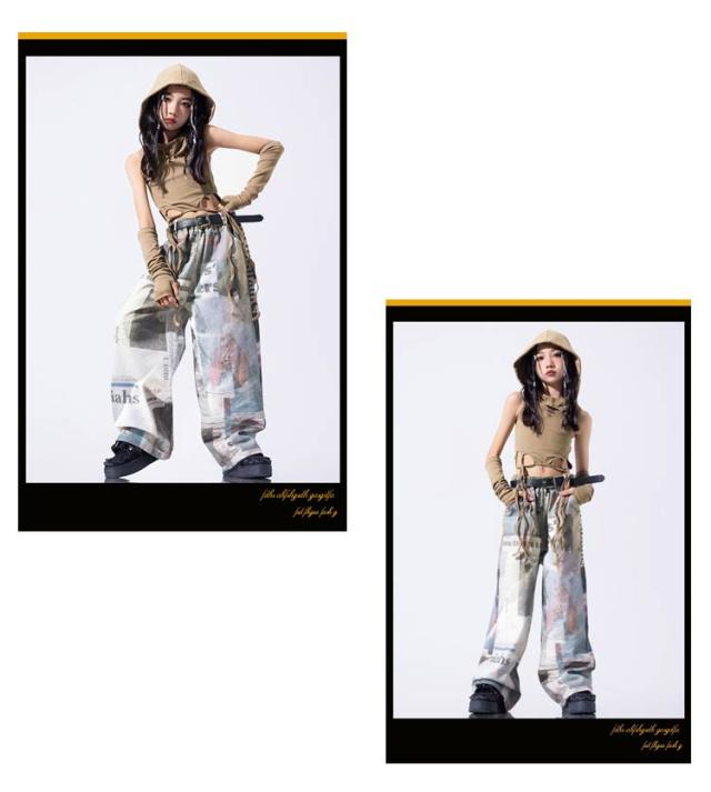 | キッズダンス衣装 単品 個性派デザインで目立つこと間違いなし! トレンド感溢れるストリートダンススタイル! ヒップホップやステージ映え抜群のコーデ! | |