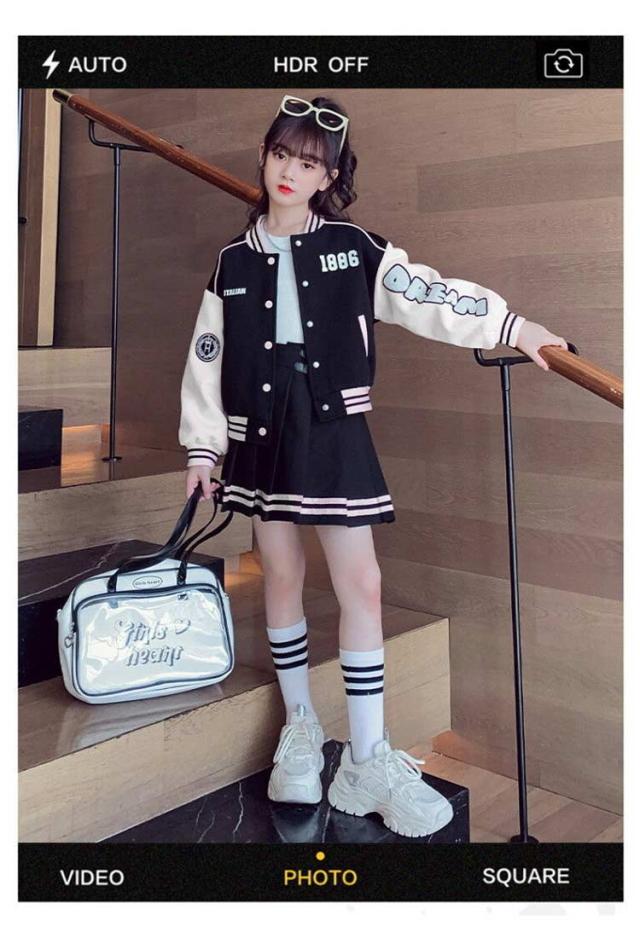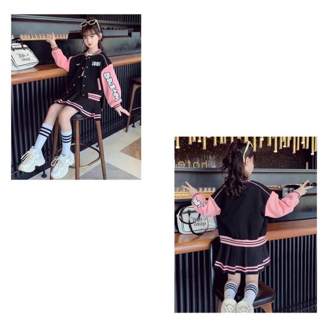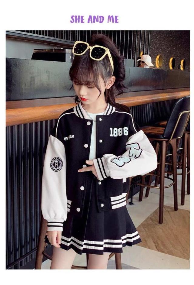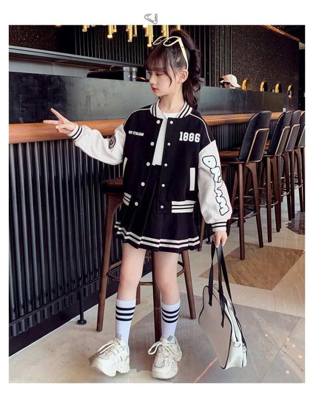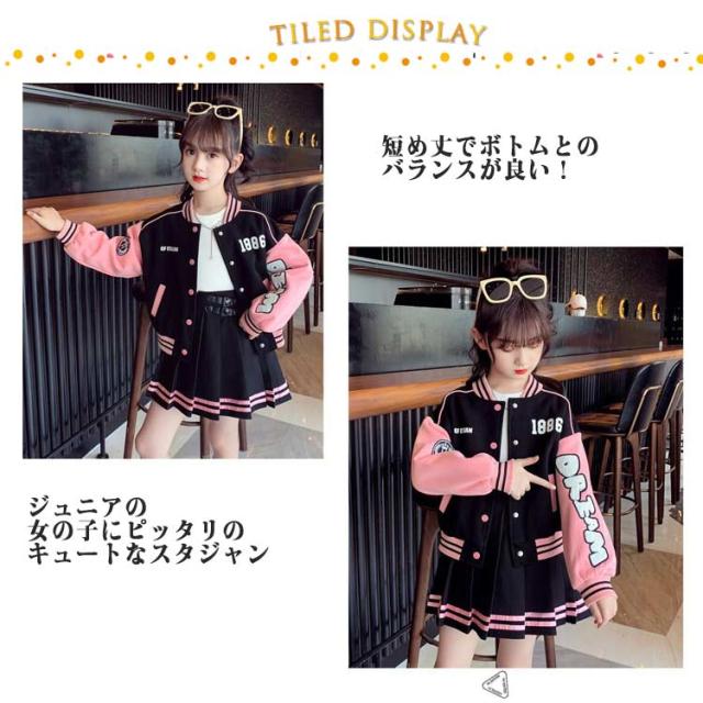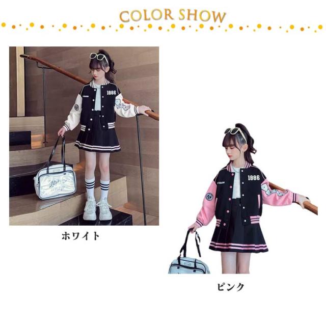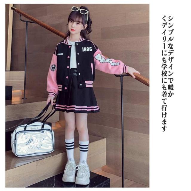 スカート ジャケット キッズ アウター 子供服 スカートセット ヒップホップ 長袖 スプリングコート スタジャン ジャンパー ダンス衣装 セットアップ 110 女の子 ジュニア カジュアル 上着 スウェット 野球服 ジャケット ベージュ ネイビー 紺色 通学 120 130 140 150 160