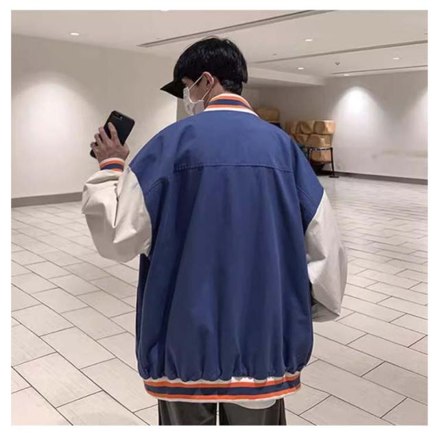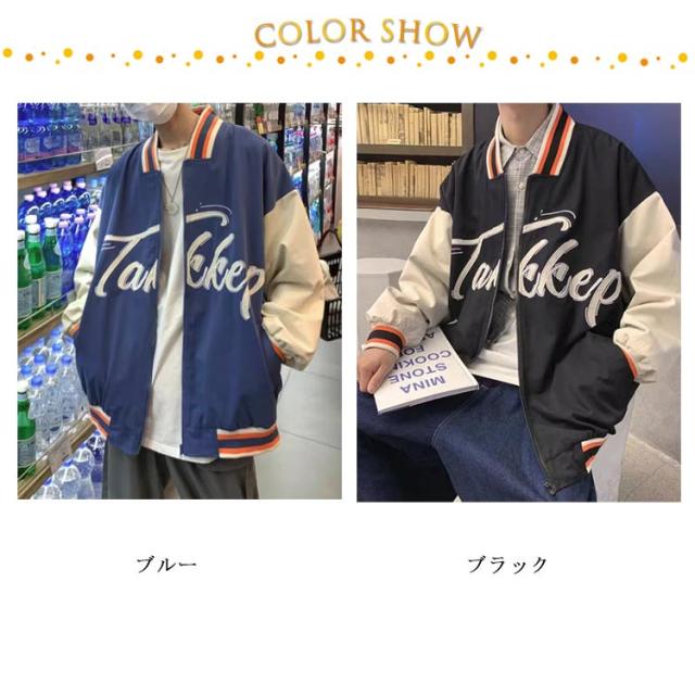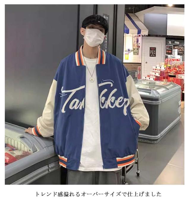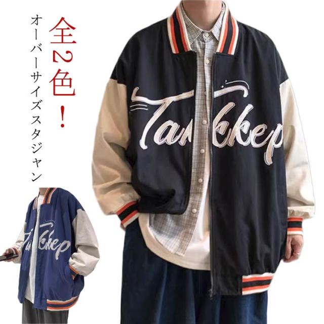 メンズ ジャケット ゆったり 春 秋 男女兼用 ジャンパー ブルゾン 送料無料 アウター 送料無料 スタジアムジャケット オーバーサイズ 配色 ライン入り 大きいサイズ 軽量 スポーツ アメカジ ストリート系 スポーティ 秋服 冬服
