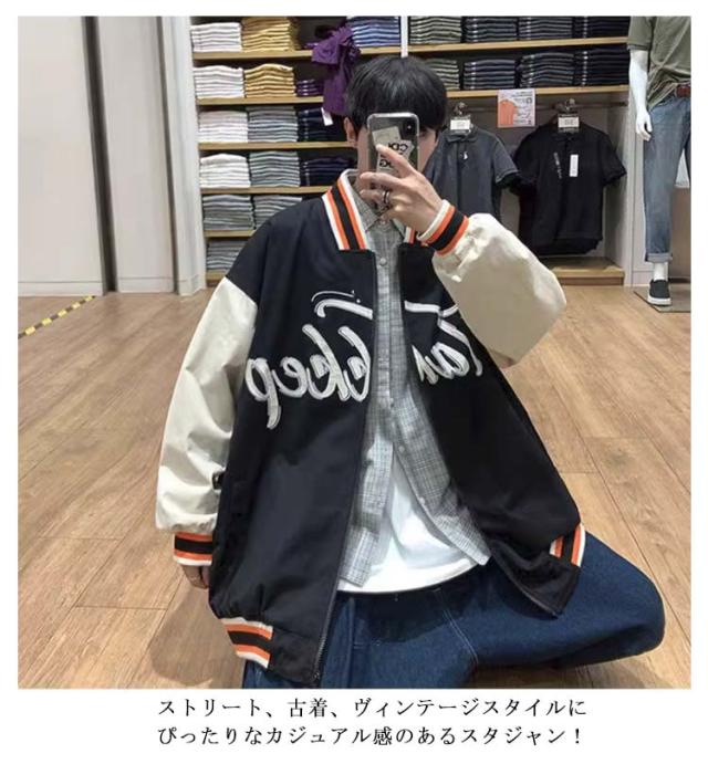 | 全2色!オーバーサイズスタジャン 軽量で着心地抜群の素材を使用! トレンド感溢れるオーバーサイズで仕上げました 配色のラインがアクセントに ストリート、古着、ヴィンテージスタイルにぴったりなカジュアル感のあるスタジャン! | |