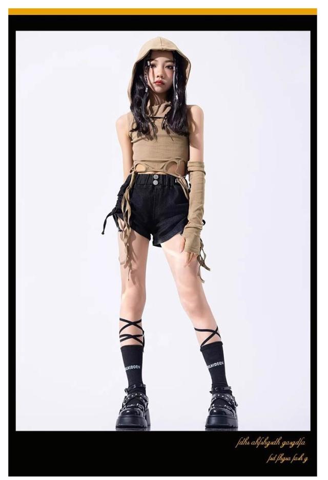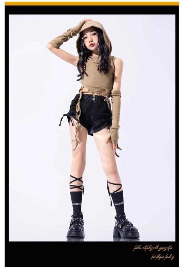hiphop トップス ヒップホップ ダンス衣装 キッズ 女の子 ジャズダンス チア スカート 子供服 キッズダンス衣装 砂色 グレー セットアップ ヘソ出し パンツ k-pop 衣装 jazz ダンス衣装 演出服 キッズ ファッション 夏 練習着