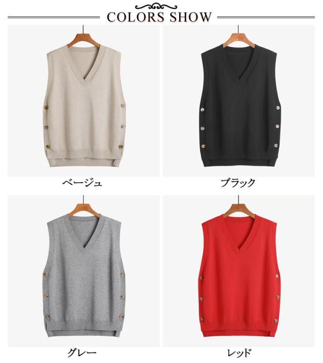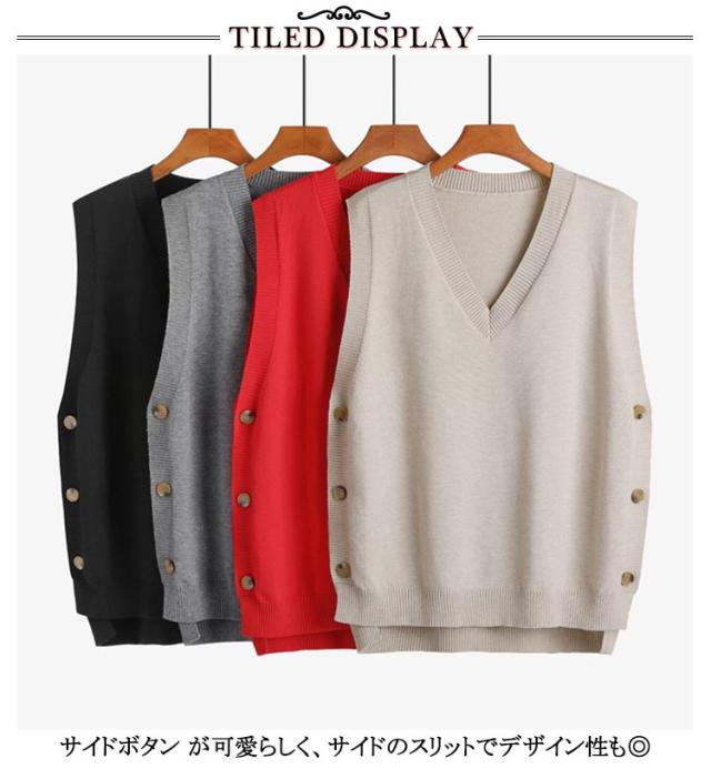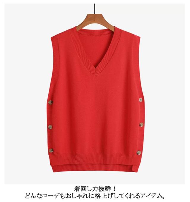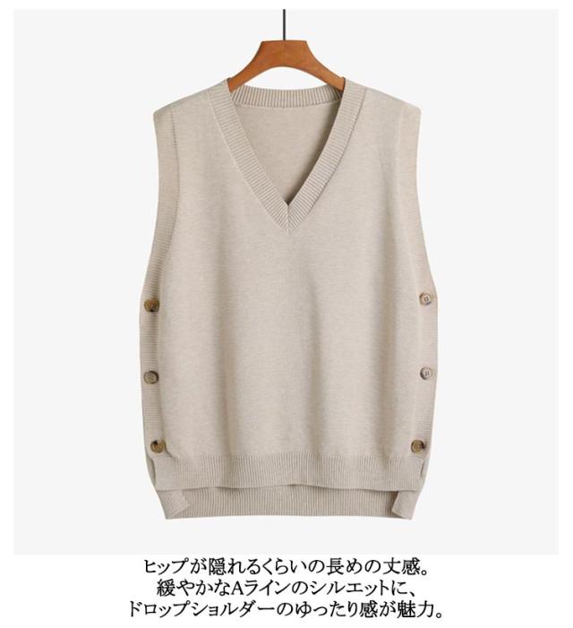 トップス ノースリーブ ニット レディース 送料無料 サイドボタン ニットベスト vネック ベスト 重ね着 ニットセーター ゆるニット レイヤード 体型カバー シンプル プルオーバー 大人かわいい お洒落 カジュアル あったか