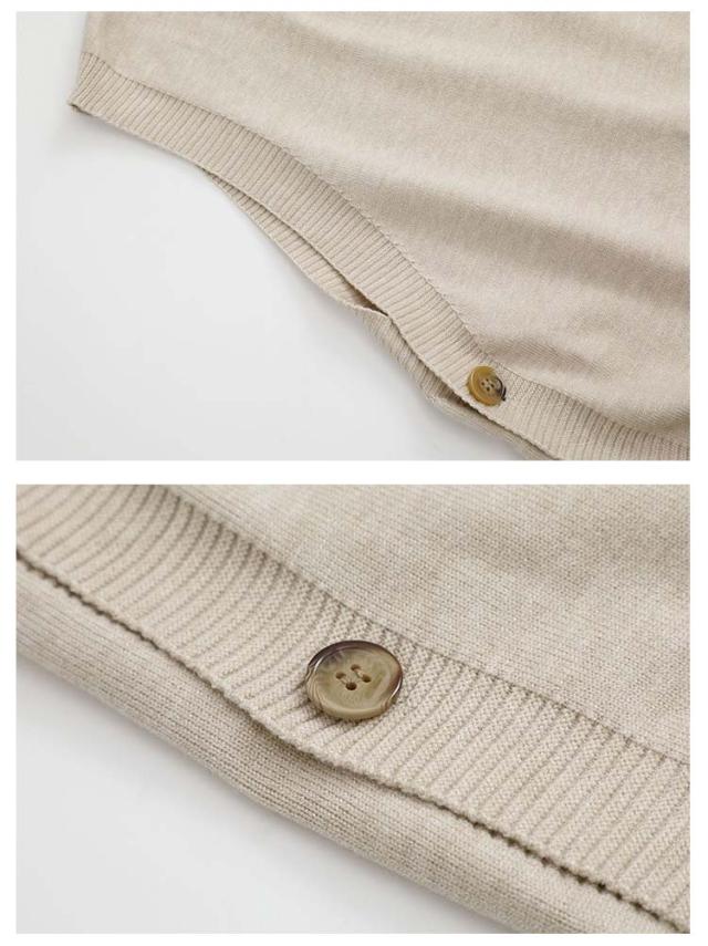 | 1枚で様々な組み合わせが楽しめるVネックニットベスト。 柔らかなニット素材で素肌に触れても全くチクチクせず、軽いのに暖かい。 両脇に3つずつ縫い付けられたレトロな調のボタンがさりげないデザインのアクセントに。 裾などのディテールが リブ仕様 になっておりきちんと感のある印象に。 シャツワンピースやカットソーと合わせたレイヤードコーデで、旬のスタイリングが完成。 深めのVネックデザインは、顔周りをすっきりとした印象にしてくれます。 ゆるっと着るだけなのに、大人っぽさもしっかり主張。秋冬時期に大活躍のプラスワンアイテム。 | |