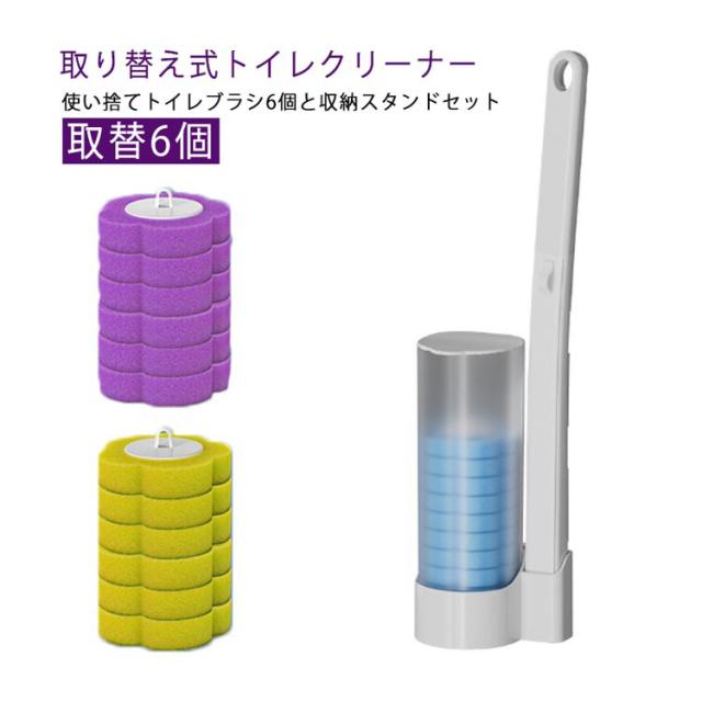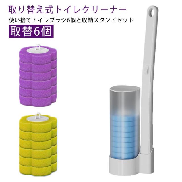 トイレ掃除 トイレ掃除 収納スタンド 使い捨てトイレブラシ 取替6個 ハンドル付き 洗剤付 スポンジ 使い捨て便器クリーナー 清潔 おしゃれ 360° セット 収納簡単 使い捨て