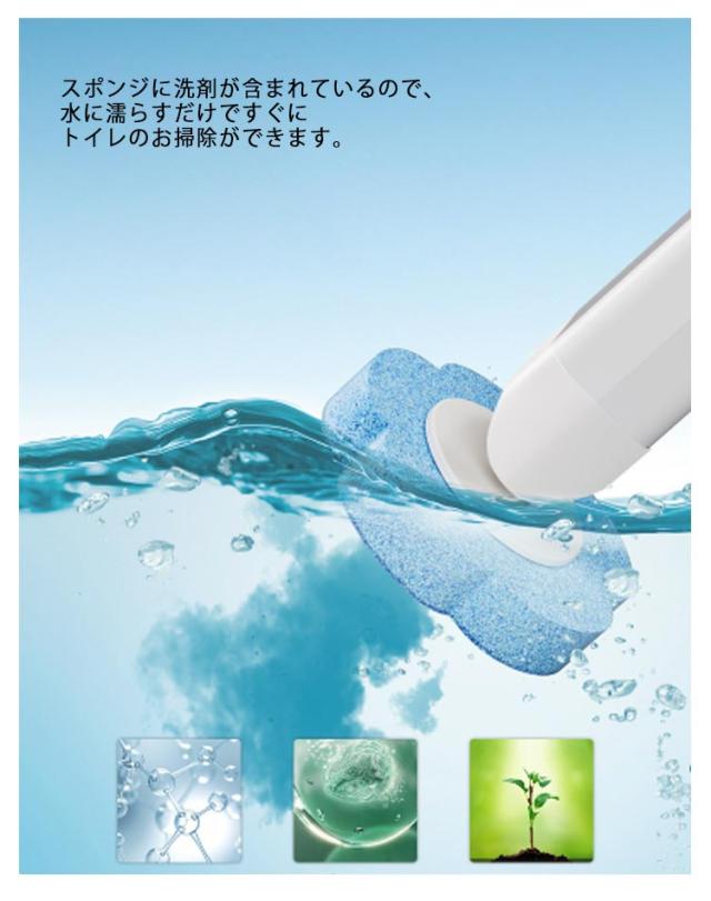 | 取り替え式トイレクリーナー! 使い捨てトイレブラシ6個と収納スタンドセット 使い終わったスポンジはそのままゴミ箱に捨てるだけ!汚れたブラシを保管しなくて済むので衛生的。 スポンジに洗剤が含まれているので、水に濡らすだけですぐにトイレのお掃除ができます。 ハンドルの先をスポンジに差し込むだけで、あっという間に取り付け完了!手間がかからず、すぐに使い始められます。 | |