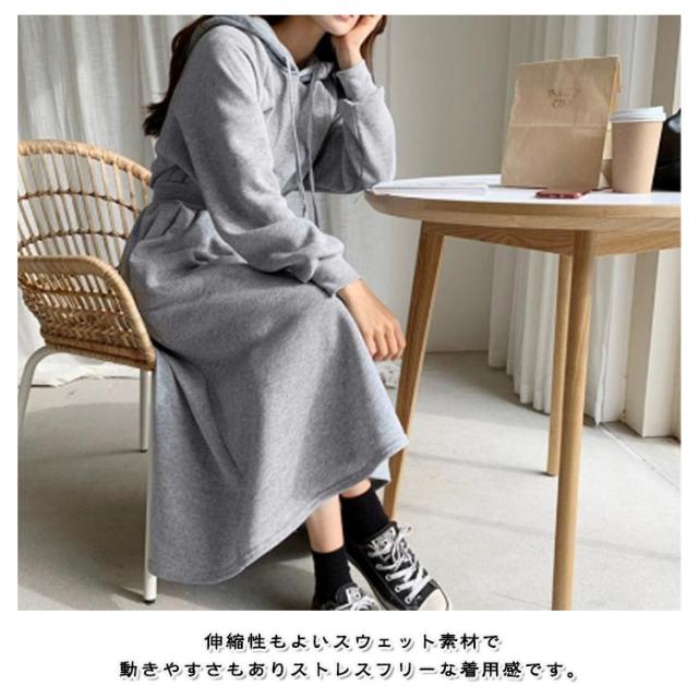 ワンピース パーカーワンピース ロングワンピ プルオーバー ロングパーカー スウェット ワンピース ロングワンピース レディース カジュアル 膝下丈 マキシ丈 フード付き きれいめ フレア 大きいサイズ グレー