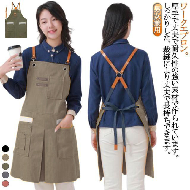 | ワークエプロン。厚手で丈夫で耐久性の強い素材で作られています。しっかりした、裁縫により丈夫で長持ちできます。 男女兼用なので幅広い年齢層が着用可能なシンプルなデザインです。 多機能なデザイン!十分な量のポケット量。小物類の収納にも最適です。= シーンに合わせて!キャンプ/木工/家事/仕事/園芸/BBQ/ガレージ/絵画/庭師/スキーショップ/大工/飲食店/居酒屋/酒屋/美容室/理容室/焚火/作業服や日常生活、仕事にも幅広く使われています。 | |