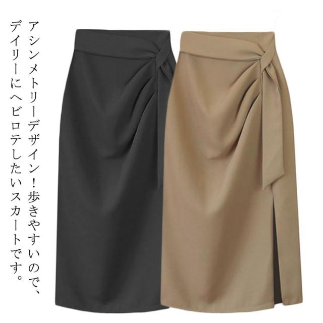 スリット フォマール スカート ギャザー入り ミモレ丈タイトスカート タイトスカート スカート 膝丈 春 夏 タイト 大きいサイズ 無地 OL 通勤 面接 スカート 仕事用 スリム 着?せ 事務 オフィス アシンメトリー きれいめ 30代 40代 50代 大人女性