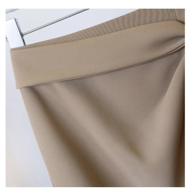 | アシンメトリーデザイン!歩きやすいので、デイリーにヘビロテしたいスカートです。 長めのタイトシルエットですが、スリットがあるので、通勤時の階段の昇り降りも楽々でした。 ふんわり大きめセーターと合わせても大人女子らしいバランスでとても綺麗です。 | |