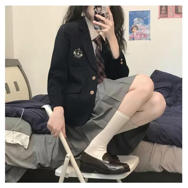 | 女の子 韓国 制服 セット内容:(ブレザー+スカート+シャツ+ネクタイ) | |