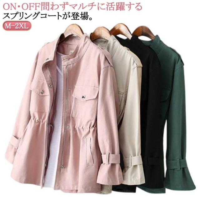 送料無料 スプリングコート 春 秋 レディース スタンドカラー 羽織 モッズジャケット ノーカラー ライトブルゾン アウター トップス 大人 シップアップ ゆる 上着 軽量 カジュアル 送料無料 体型カバー シンプル