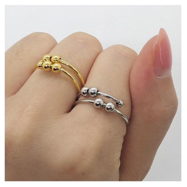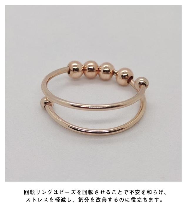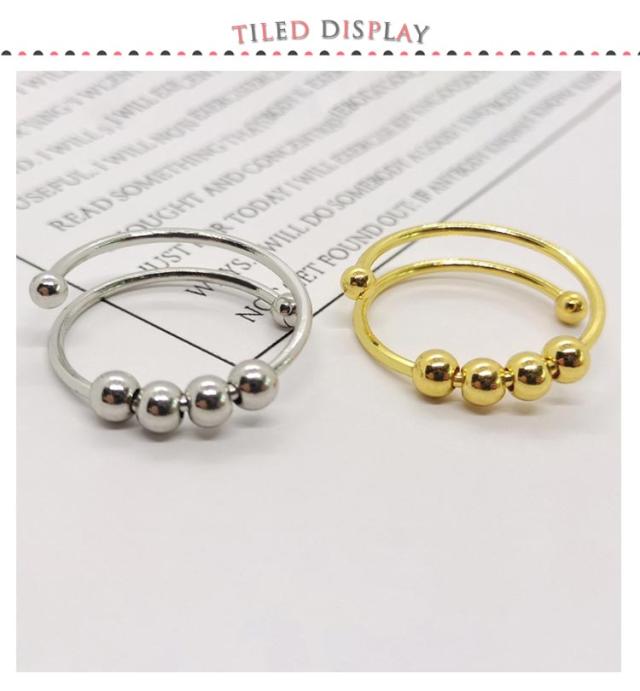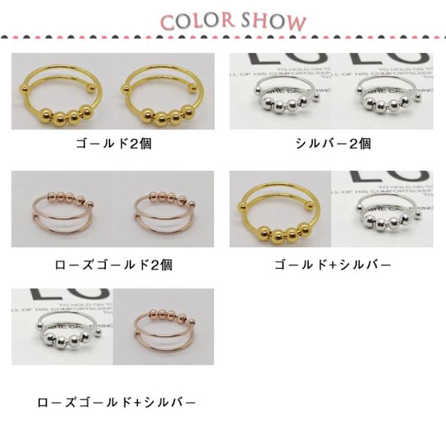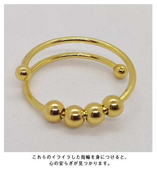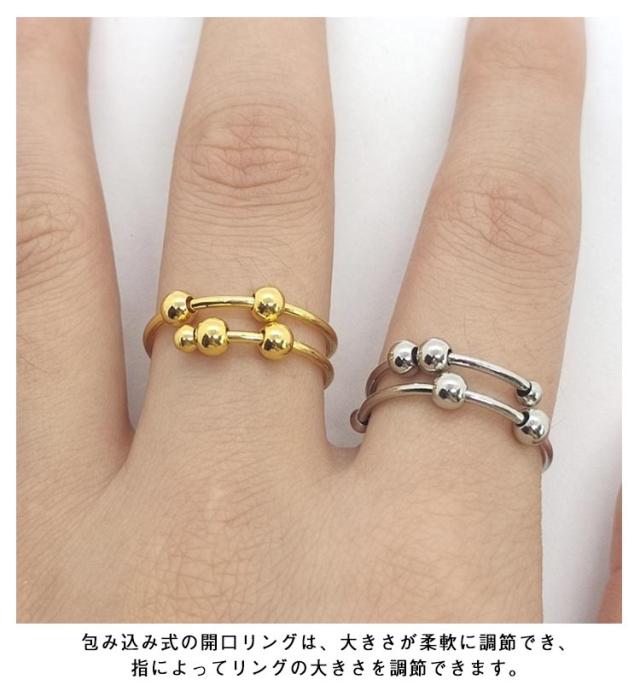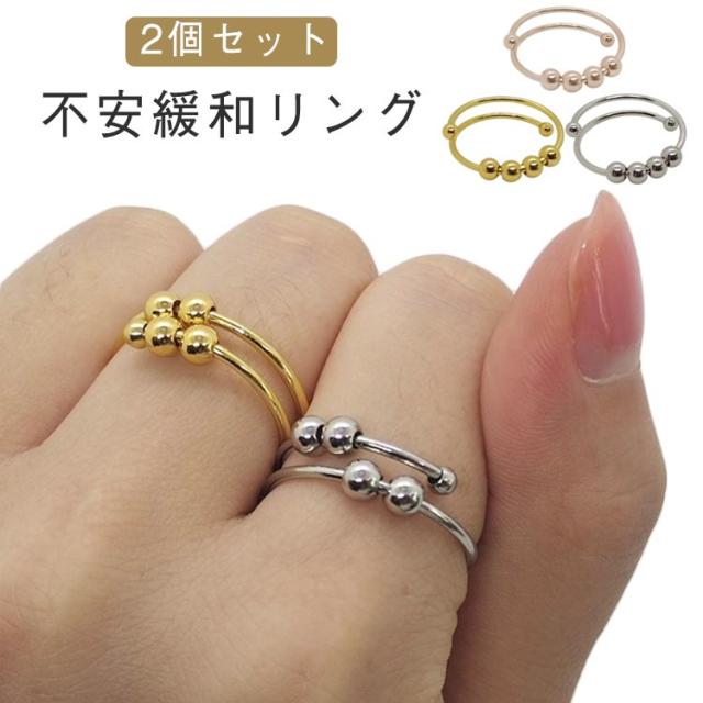 癖対策 2個セット!ストレス解消 リラックス フィジェットリング 不安 ステンレス 不安を和らげるリング フィジェットトイ 指輪 サイズ調節可能 緩和 ゴールド ストレス解消リング レディース メンズ ギフト リング