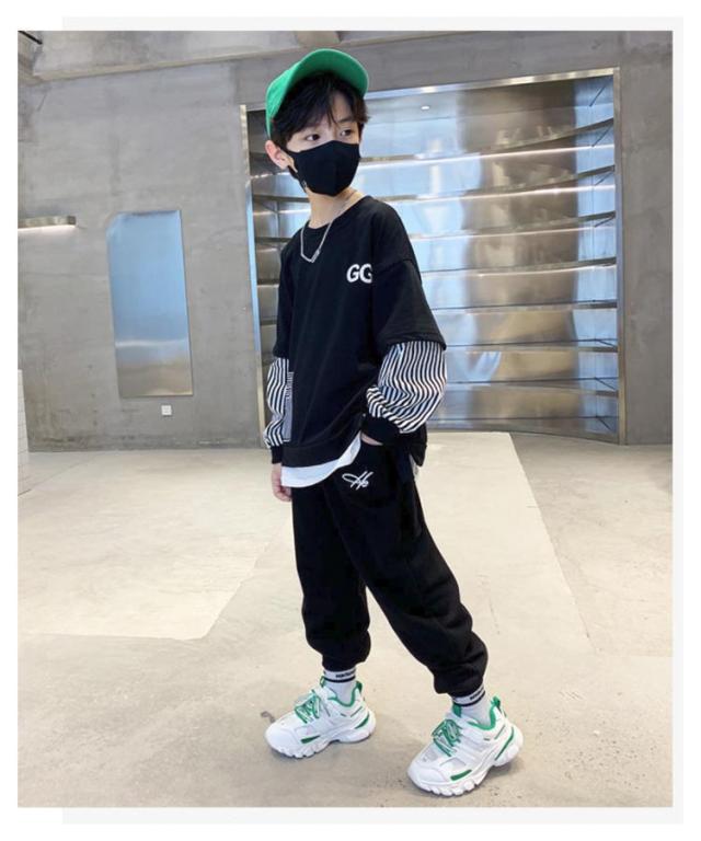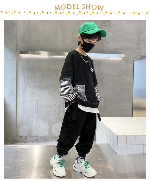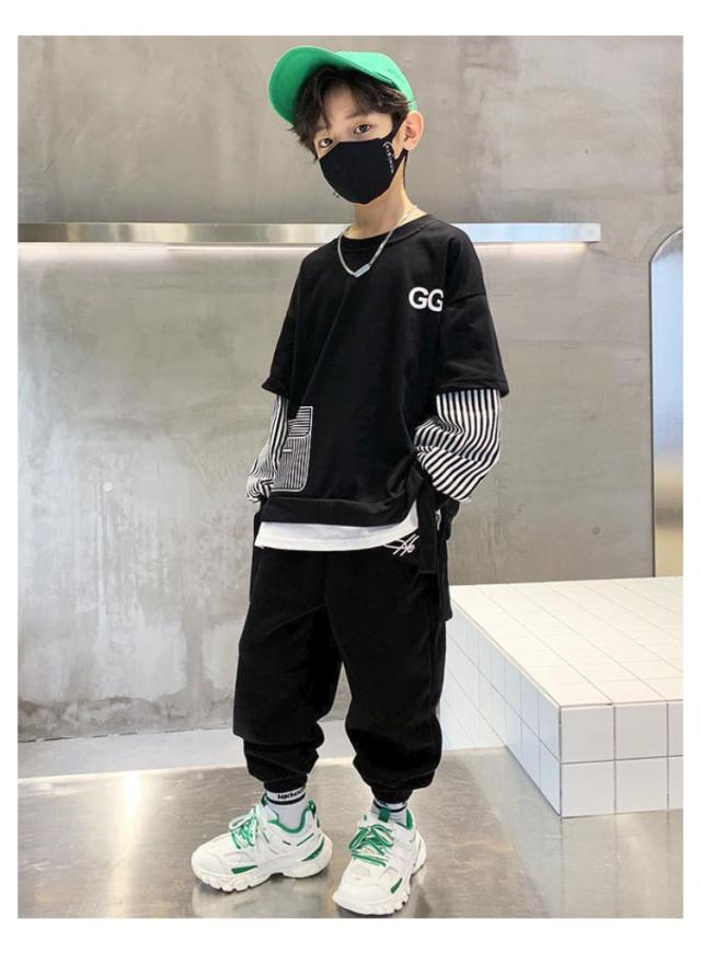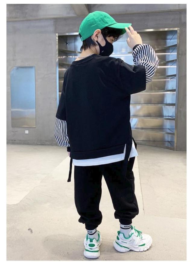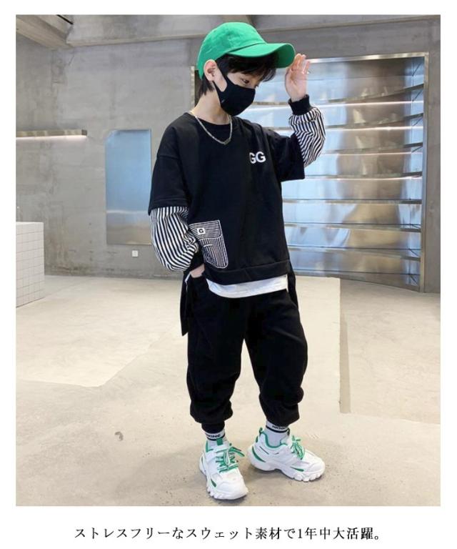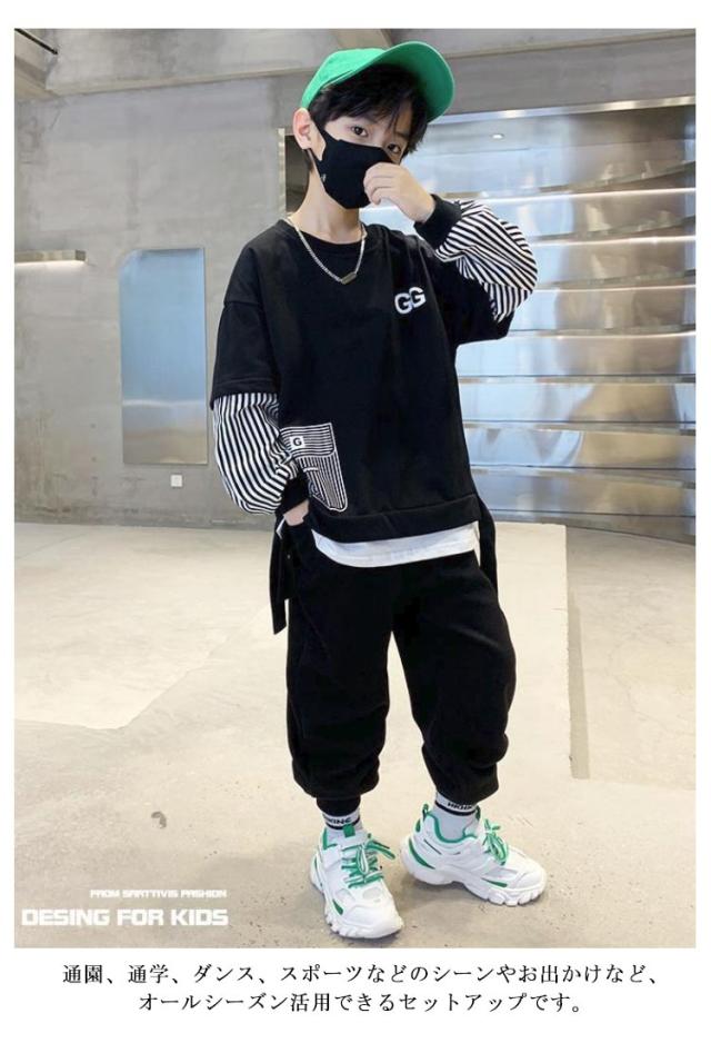 2点セット キッズ 上下セット トレーナー 上下セット ジョガーパンツ スウェットパンツ ダンス 子供服 プルオーバー 長ズボン ジャージ カジュアル 男の子 子ども服 ストラップ柄 セットアップ 部屋着 ルームウェア 春 春服