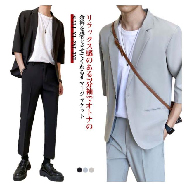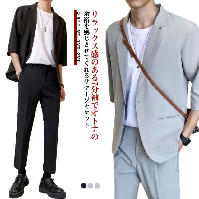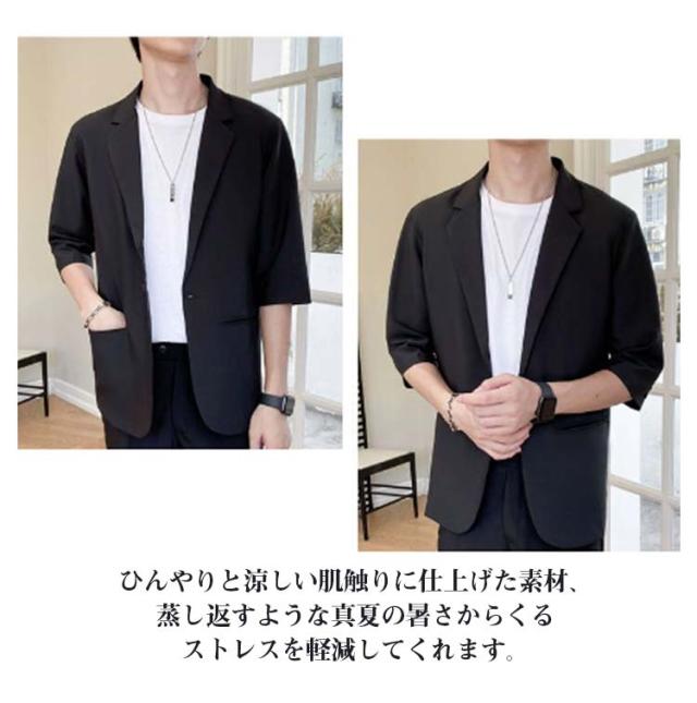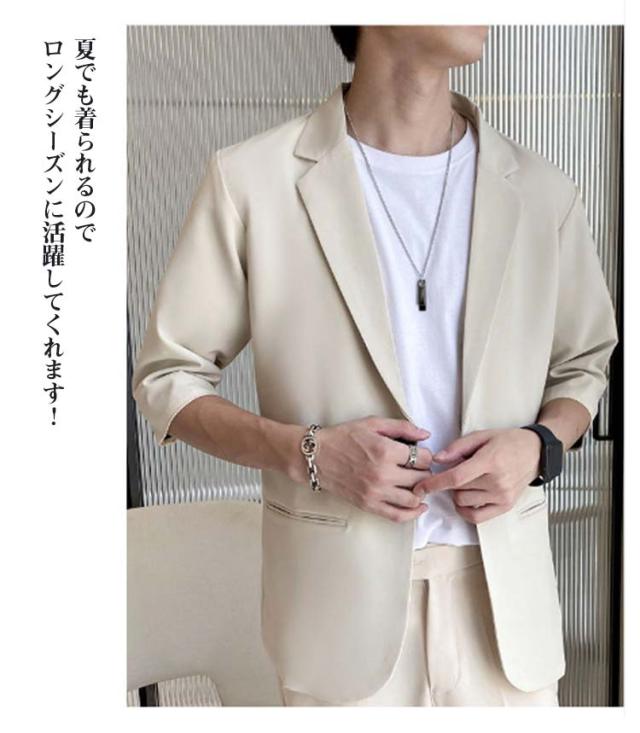 メンズ ジャケット テーラードジャケット 薄手 春 ジャケット テーラードジャケット 7分袖 サマージャケット スーツ アウター ライトジャケット カジュアルスーツ 夏 秋 大きいサイズ 紳士服 単品 冷房対策 羽織り 父の日 プレゼント ギフト 通勤 無地 シンプル