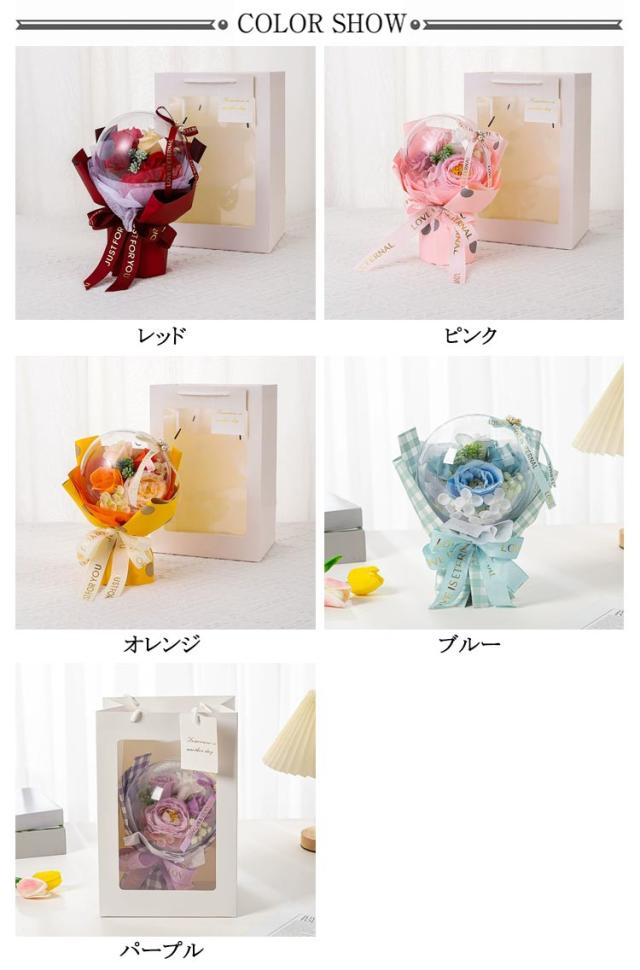 | 【膨らませてお届け】 かわいい子にあげたくなるソープフラワーギフト 誕生日のプレゼントに、退職祝い祝い、母の日に 新築祝いなど 他お祝いにおススメです♪ | |