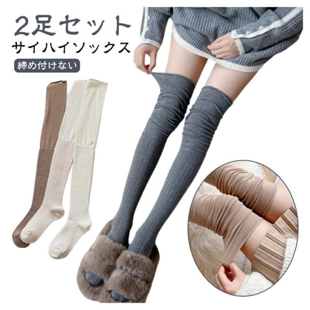 2足セット ロング ハイソックス サイハイソックス ロングソックス 靴下 ルーズソックス ニーハイソックス スーパーロング レディース リブ 切り替え ニーハイソックス オーバーニー くつ下 通学 通勤 おしゃれ 学生 春 夏 秋