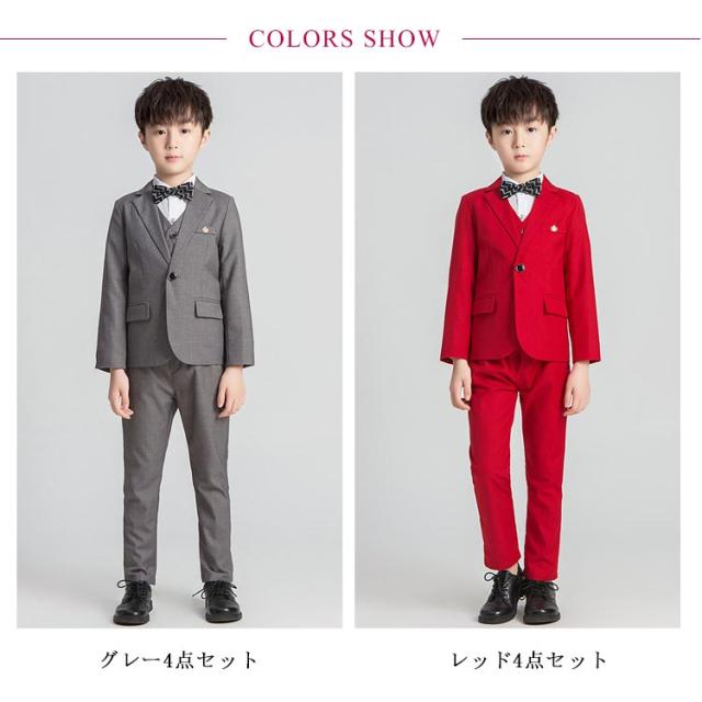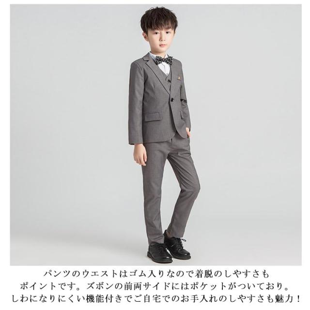 | 【4点セット】ブレザー+ベスト+ズボン+蝶結び 動きやすく、肌触りも良い。 パンツのウエストはゴム入りなので着脱のしやすさもポイントです。ズボンの前両サイドにはポケットがついており。しわになりにくい機能付きでご自宅でのお手入れのしやすさも魅力! 色んなフォーマルシーンで活躍する、セットアップスーツです!卒業式、入学式、誕生日、七五三、発表会! お子様のお洒落さと機能を重視したデザインで、結婚式、入園式、お祝いなどのフォーマルシーンはもちろん、発表会の衣装としても!やんちゃな僕も英国紳士のようにスマートに大変身♪ | |